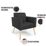 Todo mundo gosta de um ambiente bem decorado, e se for novidade melhor ainda não é mesmo? A D'Rossi, além de entregar beleza, qualidade e confiança aos clientes, ela dispõe das melhores opções em produtos, disponíveis no mercado! Se você quer um produto sofisticado, opte pela Poltrona Marisa. Ela dispõe de um tom lindo no Preto, uma cor leve, neutra e delicada que combina com qualquer estilo de decoração. Esta mobília fica perfeita na sala, escritório, quarto, varanda coberta e onde mais preferir! Sua estrutura é feita em madeira reforçada de eucalipto proveniente de reflorestamento. No assento/encosto contém um revestimento no tecido Corino, com estofamento em espuma prorelax D-23, garantindo maior conforto ao usuário. A sustentação da peça é dada pelos Pés Palito Castanho, garantindo uma resistência melhor, para relaxar o dia todo com mais comodidade. A Poltrona Marisa é ideal, para dar aquele realce que seu ambiente precisa. Tenho certeza que, esse móvel é a melhor compra que você irá fazer. Garanta já seu Kit 2 Poltronas e se acomode da melhor maneira possível! Dimensões da Poltrona: Altura total: 81 cm Largura total: 64 cm Profundidade total: 64 cm Altura do encosto: 36 cm Largura do assento: 47 cm Profundidade do assento: 48 cm Altura do chão ao assento: 45 cm Espessura do assento: 18 cm Tamanho dos pés: 30 cm Espessura do braço: 9 cm Peso: 14 kg Especificações do Produto Estrutura: Madeira Eucalipto Espuma: D-23 Tecido: Corino Tipo de pés: Pés Palito Natural Peso suportado: Até 120 Kg Garantia: 90 dias contra defeito de fabricação Montagem: O produto vai montado, apenas rosquear os pés Instruções de limpeza: Utilizar um pano limpo e levemente úmido Você irá receber: 02 Poltronas - Entregue em: 02 Volumes Observações Relevantes - Todos os produtos vão embalados com total segurança; - As cores dos produtos podem sofrer alterações dependendo do seu monitor; - Para futuras compras, não garantimos a mesma tonalidade de cor, pois existe variação a cada lote do fabricante do tecido; - As imagens são meramente ilustrativas, não acompanham objetos de decoração e eletros; - Confira as dimensões do produto no momento da compra e certifique-se de que passará normalmente por escadas, elevadores, portas e corredores; - Importante: Por se tratar de estofado as medidas podem ter uma pequena variação em até 3 cm; - Não nos responsabilizamos no ato da entrega por montagens, desmontagens, instalações de produtos; - Não nos responsabilizamos no ato da entrega por subir escadas, elevadores, nem utilização de guinchos ou equipamentos similares para acesso a pisos superiores em apartamentos; - A entrega do produto é realizada em todo território nacional, até onde as rodovias alcançam, entregas fluviais ou aéreas devem ser cotadas a parte; - Observando as orientações acima, evita-se futuros desagrados ou imprevistos com a entrega do produto. Havendo despesas adicionais, serão de responsabilidade do cliente;