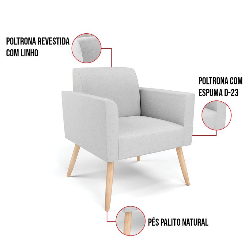 Todo mundo gosta de um ambiente bem decorado, e se for novidade melhor ainda não é mesmo? A D'Rossi, além de entregar beleza, qualidade e confiança aos clientes, ela dispõe das melhores opções em produtos, disponíveis no mercado! Se você quer um produto sofisticado, opte pela Poltrona Marisa. Ela dispõe de um tom lindo no Cinza, uma cor leve, neutra e delicada que combina com qualquer estilo de decoração. Esta mobília fica perfeita na sala, escritório, quarto, varanda coberta e onde mais preferir! Sua estrutura é feita em madeira reforçada de eucalipto proveniente de reflorestamento. No assento/encosto contém um revestimento no tecido Linho, com estofamento em espuma prorelax D-23, garantindo maior conforto ao usuário. A sustentação da peça é dada pelos Pés Palito Castanho, garantindo uma resistência melhor, para relaxar o dia todo com mais comodidade. A Poltrona Marisa é ideal, para dar aquele realce que seu ambiente precisa. Tenho certeza que, esse móvel é a melhor compra que você irá fazer. Garanta já seu Kit 2 Poltronas e se acomode da melhor maneira possível! Dimensões da Poltrona: Altura total: 81 cm Largura total: 64 cm Profundidade total: 64 cm Altura do encosto: 36 cm Largura do assento: 47 cm Profundidade do assento: 48 cm Altura do chão ao assento: 45 cm Espessura do assento: 18 cm Tamanho dos pés: 30 cm Espessura do braço: 9 cm Peso: 14 kg Especificações do Produto Estrutura: Madeira Eucalipto Espuma: D-23 Tecido: Linho Tipo de pés: Pés Palito Natural Peso suportado: Até 120 Kg Garantia: 90 dias contra defeito de fabricação Montagem: O produto vai montado, apenas rosquear os pés Instruções de limpeza: Utilizar um pano limpo e levemente úmido Você irá receber: 02 Poltronas - Entregue em: 02 Volumes Observações Relevantes - Todos os produtos vão embalados com total segurança; - As cores dos produtos podem sofrer alterações dependendo do seu monitor; - Para futuras compras, não garantimos a mesma tonalidade de cor, pois existe variação a cada lote do fabricante do tecido; - As imagens são meramente ilustrativas, não acompanham objetos de decoração e eletros; - Confira as dimensões do produto no momento da compra e certifique-se de que passará normalmente por escadas, elevadores, portas e corredores; - Importante: Por se tratar de estofado as medidas podem ter uma pequena variação em até 3 cm; - Não nos responsabilizamos no ato da entrega por montagens, desmontagens, instalações de produtos; - Não nos responsabilizamos no ato da entrega por subir escadas, elevadores, nem utilização de guinchos ou equipamentos similares para acesso a pisos superiores em apartamentos; - A entrega do produto é realizada em todo território nacional, até onde as rodovias alcançam, entregas fluviais ou aéreas devem ser cotadas a parte; - Observando as orientações acima, evita-se futuros desagrados ou imprevistos com a entrega do produto. Havendo despesas adicionais, serão de responsabilidade do cliente;