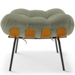 É fato que o tempo passa, mas os clássicos sempre permanecem. Desenvolvida em 1956 pelo renomeado designer austríaco Martin Eisler, o Puff Costela é um dos considerados clássicos do mobiliário contemporâneo reconhecido internacionalmente. Ele é a junção de tudo que uma decoração de bom gosto pede, almofadas capitonê macias e confortáveis no assento, base com traçado de linhas elegantes e curvilíneas com o shape formato costela. Seus pés delicados valorizam seu revestimento de fibra siliconada, ideal para decorações residenciais, sofisticadas ou clássicas. Sua robustez além de marcar presença no ambiente, oferece conforto inigualável. Dimensões do Puff (L x A x P) 68 x 48 x 58 cm Características: Estrutura em madeira compensado anatômico com pintura em fórmica na cor Imbuia. Estrutura da base em Aço Carbono com pintura Epóxi na cor Preto. Tubo de ¾” com espessura de 1,5mm. Assento e encosto com enchimento 100% em fibra de silicone e acabamento em capitonê. Revestimento em Bouclê na cor Oliva de alta qualidade. Peso Suportado: Até 120 kg. - Por se tratar de estofado as medidas podem ter uma pequena variação de até 3 cm. - A tonalidade do produto real poderá ter ligeira variação devido o lote de tecidos. Observações importantes: - Produto para uso residencial em ambiente interno, não devendo ficar exposto diretamente ao sol, calor e umidade excessivos. - Pode haver alguma diferença de tonalidade entre a imagem e o produto real, por conta do tratamento de imagens e a calibração de cores do seu monitor. - As imagens são meramente ilustrativas, não acompanham objetos de decoração e eletrônicos. - Ao receber a mercadoria, o cliente deve verificar as condições da embalagem, caso haja alguma avaria não assine o comprovante de recebimento. - Montagem, desmontagem e outras instalações serão de responsabilidade do cliente. Não nos responsabilizamos, no ato da entrega, por subir escadas/elevadores ou pelo transporte por guincho em apartamentos. Eventuais despesas são de responsabilidade do comprador. - Confira as dimensões do produto e certifique-se de que passará normalmente por supostos elevadores, portas, escadas e/ou corredores de sua residência.