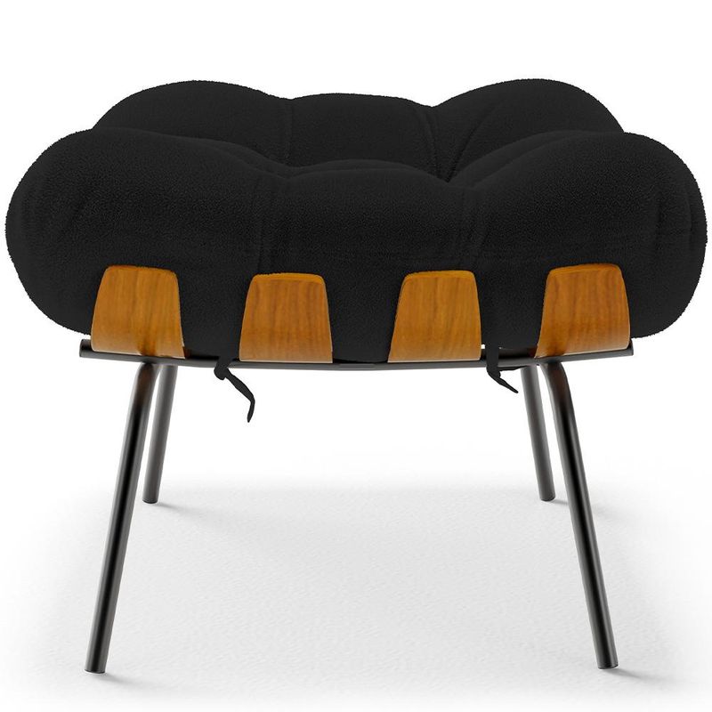 É fato que o tempo passa, mas os clássicos sempre permanecem. Desenvolvida em 1956 pelo renomeado designer austríaco Martin Eisler, o Puff Costela é um dos considerados clássicos do mobiliário contemporâneo reconhecido internacionalmente. Ele é a junção de tudo que uma decoração de bom gosto pede, almofadas capitonê macias e confortáveis no assento, base com traçado de linhas elegantes e curvilíneas com o shape formato costela. Seus pés delicados valorizam seu revestimento de fibra siliconada, ideal para decorações residenciais, sofisticadas ou clássicas. Sua robustez além de marcar presença no ambiente, oferece conforto inigualável. Dimensões do Puff (L x A x P) 68 x 48 x 58 cm Características: Estrutura em madeira compensado anatômico com pintura em fórmica na cor Imbuia. Estrutura da base em Aço Carbono com pintura Epóxi na cor Preto. Tubo de ¾” com espessura de 1,5mm. Assento e encosto com enchimento 100% em fibra de silicone e acabamento em capitonê. Revestimento em Bouclê na cor Preto de alta qualidade. Peso Suportado: Até 120 kg. - Por se tratar de estofado as medidas podem ter uma pequena variação de até 3 cm. - A tonalidade do produto real poderá ter ligeira variação devido o lote de tecidos. Observações importantes: - Produto para uso residencial em ambiente interno, não devendo ficar exposto diretamente ao sol, calor e umidade excessivos. - Pode haver alguma diferença de tonalidade entre a imagem e o produto real, por conta do tratamento de imagens e a calibração de cores do seu monitor. - As imagens são meramente ilustrativas, não acompanham objetos de decoração e eletrônicos. - Ao receber a mercadoria, o cliente deve verificar as condições da embalagem, caso haja alguma avaria não assine o comprovante de recebimento. - Montagem, desmontagem e outras instalações serão de responsabilidade do cliente. Não nos responsabilizamos, no ato da entrega, por subir escadas/elevadores ou pelo transporte por guincho em apartamentos. Eventuais despesas são de responsabilidade do comprador. - Confira as dimensões do produto e certifique-se de que passará normalmente por supostos elevadores, portas, escadas e/ou corredores de sua residência.