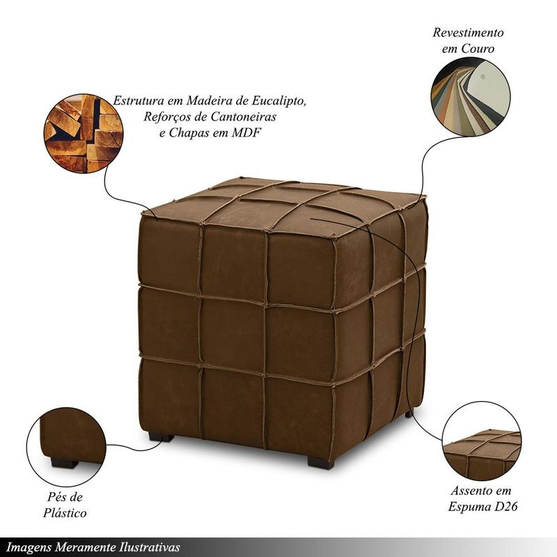 O Puff Augusto é a combinação perfeita de elegância e conforto, trazendo um toque refinado para qualquer ambiente. Com uma estrutura robusta, fabricada em madeira de eucalipto tratada e reforçada com cantoneiras e chapas em MDF, ele oferece resistência e durabilidade para suportar o uso diário. Essa construção sólida garante estabilidade, tornando o Puff Augusto uma escolha confiável para complementar sua sala de estar, quarto ou escritório. O assento do Puff Augusto é acolchoado com espuma D-26, proporcionando um conforto extra para apoiar os pés ou servir como assento adicional. Revestido em couro, o puff exibe um visual sofisticado, além de ser fácil de limpar, o que facilita sua manutenção. Seus pés em poliestireno conferem leveza ao design, integrando-se perfeitamente a diversos estilos de decoração. Ideal para quem busca versatilidade, o Puff Augusto une praticidade e um visual moderno, sendo a peça certa para valorizar seu ambiente com conforto e estilo. Dimensões dos Produtos: Altura: 45cm Largura: 43cm Profundidade Total: 43cm Características dos Produtos: Material da Estrutura: Estrutura em Madeira de Eucalipto Tratada com Reforços, Cantoneiras e Chapas em MDF Assento: Com Espuma D-26 Pés: Em Poliestireno Revestimento: Couro Necessita de Montagem: Não Conteúdo da Embalagem: 2 Puffs Instruções/Cuidado: Utilizar um pano levemente umedecido com água, seguido de pano seco. Evitar exposição ao sol, para que o produto não sofra alterações na cor. Não limpar com escovas ou produtos abrasivos. Observações Importantes: - As imagens são meramente ilustrativas e não acompanham objetos de decoração e eletros - Pode haver alguma diferença de tonalidade entre a imagem e o produto, por conta do tratamento de imagens e a calibração de cores da sua tela. - Todos os nossos produtos são enviados devidamente embalados e com total segurança - Confira as dimensões do produto no momento da compra e certifique-se de que passará normalmente por elevadores, portas, escadas e/ou corredores, evitando assim futuros desagrados ou imprevistos com a entrega do produto.