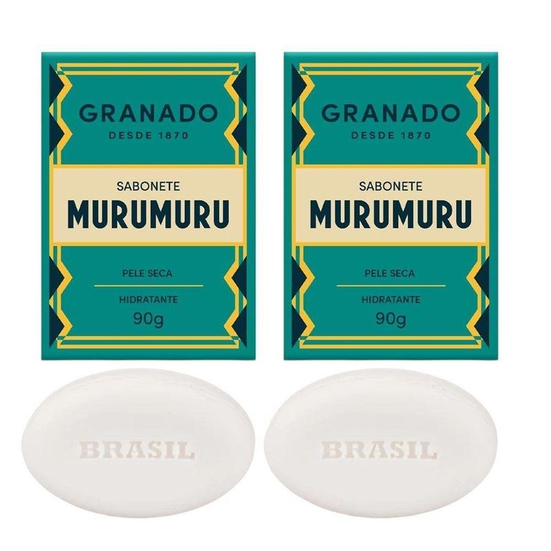 Kit 2 Sabonete Em Barra Murumuru Tratamento Pele Seca Hidratante Granado 90gKit 2 Sabonete em Barra Murumuru Tratamento Pele Seca Hidratante Granado 90gLançamento da linha Tratamento, o Sabonete de Murumuru Granado foi desenvolvido para cuidar de peles secas e ressecadas, oferecendo hidratação e limpeza diária.Indicado para uso no rosto e no corpo, sua fórmula com manteiga de murumuru contribui para o conforto e a hidratação da pele.Sua identidade visual é moderna, vibrante e mantém o compromisso com a eficácia e o cuidado da pele.Vegano. Testado dermatologicamente.Modo de usar: Aplique o produto sobre a pele molhada, friccionando suavemente para obter espuma. Em seguida enxague.Sabonete em Barra Murumuru Tratamento Pele Seca Hidratante Granado 90gCódigo: 128103Referênica: 7896512989918Marca: GranadoMaterial: MurumuruCor: BrancoDimensões do produto (AxLxC): 8,50x6,00x3,00cm cada unidadeQuantidade: Kit com 2 unidades