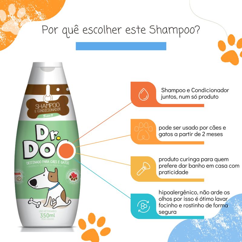 Procurando por um Kit Especial de Shampoo para Cachorro e Gato com Perfume da mesma fragrância? Mas tem dúvida de qual melhor opção? Calma, a gente te dá uma forcinha. Afinal, toda a nossa linha foi inspirada na Romi, nossa (senhora) labradora que tem medo do barulho do secador do petshop e por isso, o banho tem que ser em casa mesmo! 32kgs de pura bagunça e diversão!! E, para ajudar, ela tem a pele muito sensível e delicada, então os produtos que desenvolvemos para ela (e para muitos de vocês), limpa profundamente, sem ressecar, ou seja, respeitando a camada de proteção natural da pele dela. (Esse é o segredo para evitar coceira, sabia?) Bom, agora me fala: como é seu peludinho? A gente tem 3 versões para te ajudar: => Se o seu Peludinho é branquinho ou tem os pelos claros, bege clarinho, mel, a versão clareadora e branqueadora pode ser a opção indicada. Sabe por que? Ela tem branqueador óptico que vai ajudar a tirar os possíveis encardidinhos das patinhas e até mesmo as manchas de lágrima ácida, muito comum em raças como lhasa e shih tzu (sem arder os olhos); => Agora, se seu Filho de 4 Patas acabou de chegar em Casa Ou é um Eterno Filhote ou Bebê como a nossa Romi, tem a versão Neutro e Filhotes, com uma Formulação Super Suave, PH Neutro e Com um Cheirinho muito, muito Gostoso de Bebê! => A Versão 5 em 1, é Aquela Super Coringa: ela Limpa profundamente (Sem ressecar), Condiciona, Hidrata, Perfuma e tem Óleo de Neem, conhecido como um super antipulgas natural. Neste Kit você leva 2x Shampoos da sua preferência + o perfume de 120ml da mesma fragrância para potencializar ainda mais a sensação de frescor depois do banho!! como usar: aplicar o shampoo Dr. Dog da sua Versão Preferida nos pelos molhados, massageando suavemente toda a pelagem do animal até obter espuma em abundância. Deixe agir de 3 a 5 minutos e enxágue bem. Para melhores resultados, repita a operação e finalize o banho com o condicionador Leave-in Dr. Dog para fechar a cutícula dos pelos e promover brilho. E Secar muito bem depois. para quais pets é indicada: para cães e gatos de todas as raças e tipos de pelos, a partir dos 2 meses de vida! Ah, e nossos produtos são desenvolvidos com matérias primas de padrão humano. O que isso significa? Minimizamos os riscos de alergias, coceiras e dermatite! Principal preocupação de quem cuida com tanto carinho dos pets. Faça o teste: nossos produtos não ardem os olhos! Afinal, o bem estar dos pets passa pelo banho!