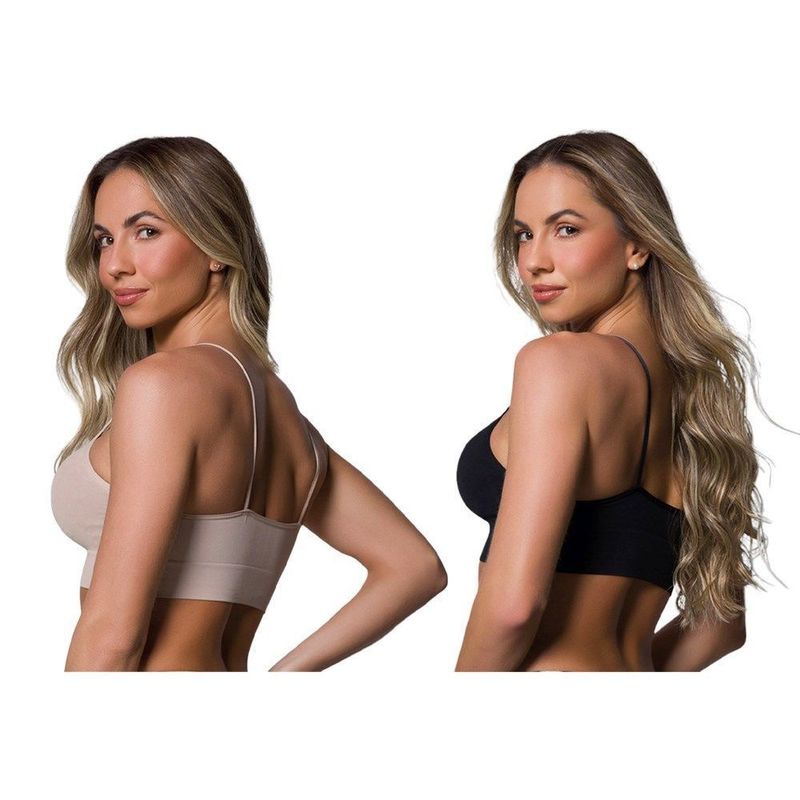Descrição:Com o Kit 2 Sutiãs Selene Sem Costura Feminino é a escolha certa para trazer mais conforto e bem-estar para seus treinos e em seu dia a dia. Confeccionado em poliamida e elastano, o modelo traz toque suave à pele e mais comodidade por não conter costuras, e além disso, suas alças são finas. Possui decote U, detalhes em alto relevo e barra elástica com acabamento canelado, dando maior segurança. Medidas aproximadas (cm): M-30x27 / G-32x29 / GG-34x31 (largura x comprimento). INFORMAÇÕES: Referência: 203300 Composição: 91% poliamida e 9% poliéster elastano Mangas: Não possui Decote: U Gênero: Feminino