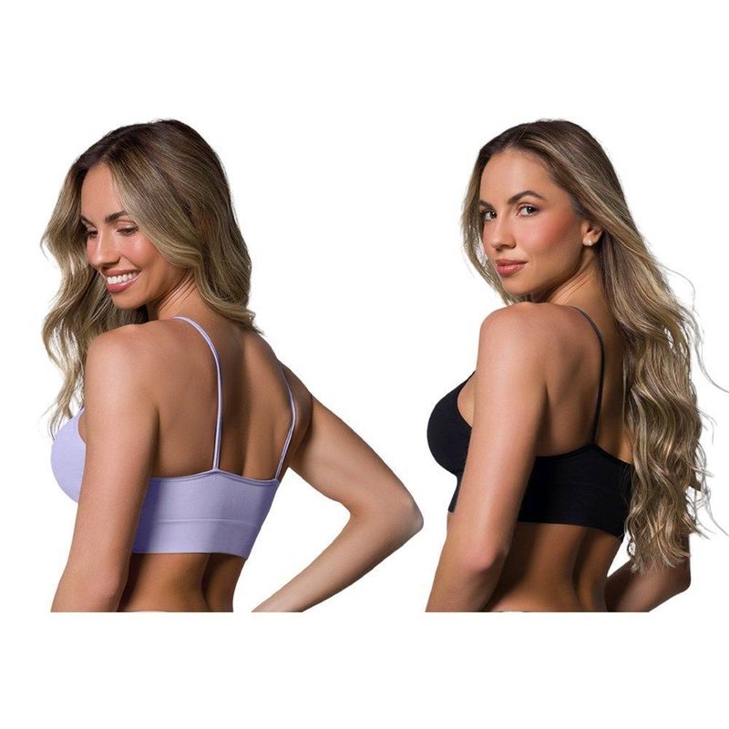 Descrição:Com o Kit 2 Sutiãs Selene Sem Costura Feminino é a escolha certa para trazer mais conforto e bem-estar para seus treinos e em seu dia a dia. Confeccionado em poliamida e elastano, o modelo traz toque suave à pele e mais comodidade por não conter costuras, e além disso, suas alças são finas. Possui decote U, detalhes em alto relevo e barra elástica com acabamento canelado, dando maior segurança. Medidas aproximadas (cm): M-30x27 / G-32x29 / GG-34x31 (largura x comprimento). INFORMAÇÕES: Referência: 203300 Composição: 91% poliamida e 9% poliéster elastano Mangas: Não possui Decote: U Gênero: Feminino