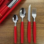 Kit 25 Peças Jogo De Faqueiro Inox Com Gaveteiro - VermelhaO nosso porta talheres de gaveta é ideal para você, um produto que alinha organização a modernidade. Além de contar com um design sofisticado de inox seus cabos são produzidos com polipropileno proporcionando maior durabilidade e controle durante o manuseio.Junto com as 25 peças de talheres que são compostos por 6 facas, 6 garfos, 6 colheres e 6 colheres de chá e o gaveteiro, o nosso jogo vem com um porta talher de gaveta que além de manter sua gaveta ou balcão organizado também é versátil ao servir como um escorredor dos talheres, um jogo completo.Suas dimensões são:Facas: Comprimento 22,2 cmGarfo: Comprimento 20,1 cmColher De Mesa: Comprimento 19,5 cmColher De Sobremesa: Comprimento 15 cmContém: Jogo de Faqueiro Inox Com Gaveteiro 25 Peças - Vermelha