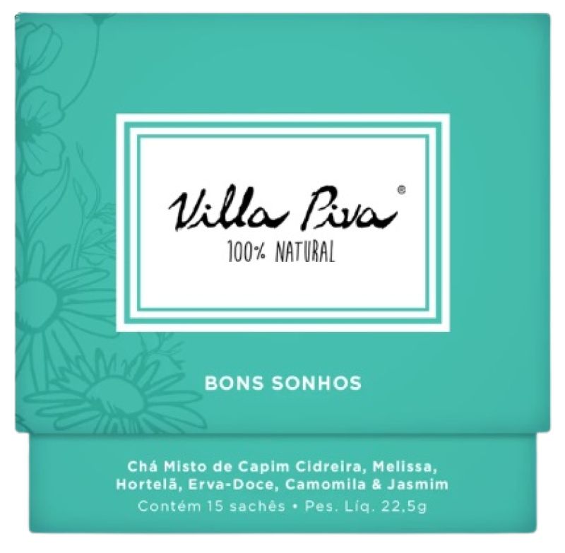 Feito de ingredientes 100% naturais, o Chá Misto Bons Sonhos Villa Piva é composto por um blend de capim cidreira, melissa, hortelã, erva doce, camomila e jasmin, todos selecionados um a um.Ingredientes: Capim cidreira, melissa, hortelã, erva doce, camomila e jasmim. NÃO CONTÉM GLÚTEN.Sobre a marca: Villa Piva é uma marca que estimula e promove uma rotina saudável de alimentação, prezando pela garantia de ingredientes de origem, processos transparentes de produção e linhas de produto criativas, desenvolvidas com intuito de promover uma melhor qualidade de vida aos seus consumidores.Além do frescor e sabor das frutas do Vale dos Vinhedos, um terroir internacionalmente reconhecido, nossos sucos, chás e água de coco trazem diversos benefícios à saúde, proporcionando alto poder antioxidante ao organismo. Experimente!Sobre a Boomi: A Boomi é um mercado online com produtos saudáveis e sustentáveis, que fazem bem à saúde e ao planeta. São mais de 1.800 produtos de 100 pequenas marcas para você!Nascemos pequenos, mas com um propósito gigante: conectar pessoas a produtos acessíveis que tragam benefícios para a saúde, para o planeta e para a sociedade. Para isso, buscamos ofertar produtos de pequenos agricultores e pequenas empresas em um mundo cada vez mais veloz e que busca mais produtividade. Vamos sempre buscar levar o melhor para você!Nosso propósito é conectar alimentos saudáveis e produtos naturais e sustentáveis a pessoas preocupadas com a sua saúde e com a saúde do planeta. Com preço justo, comodidade e informações confiáveis.Curadoria: Nossos produtos são criteriosamente validados pela nossa curadoria de produtos saudáveis, que busca produtores e empresas que compartilham do nosso alto padrão de qualidade. Da enorme lista de ingredientes banidos à preocupação do bem estar animal, desde o primeiro dia seguimos fieis aos nossos valores, trabalhando com transparência e práticas sustentáveis. Vendemos apenas produtos que admiramos e que nos orgulha.