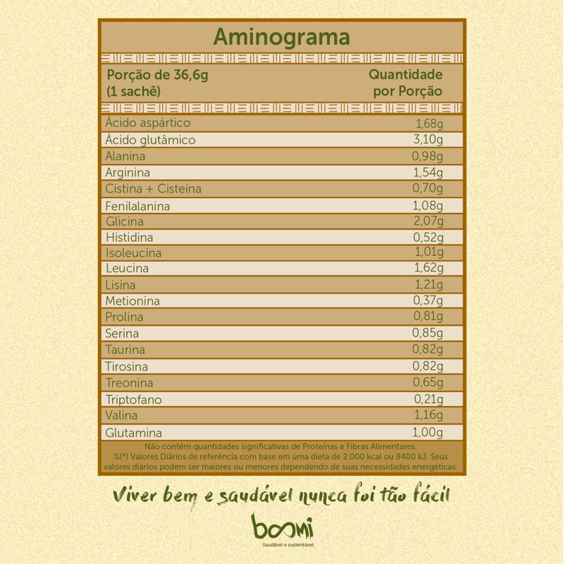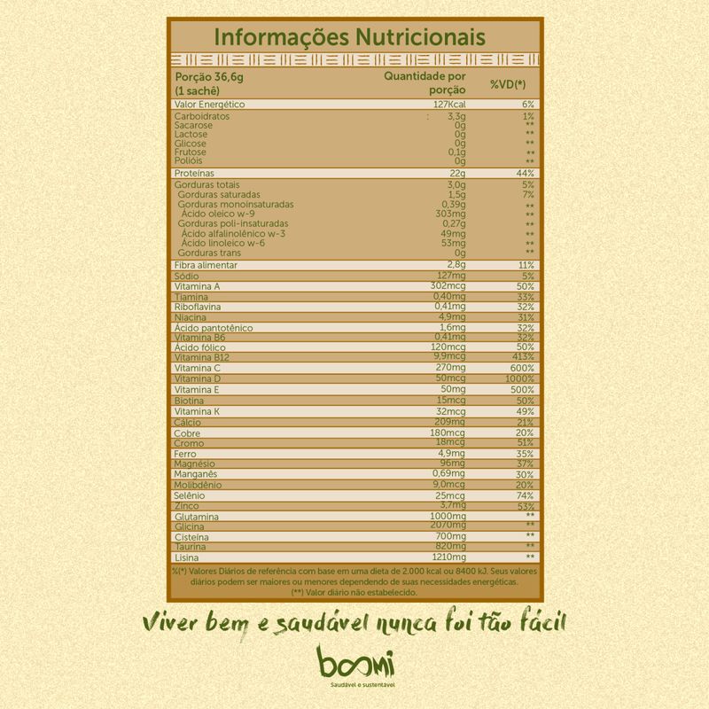O Immuno Veggie Protein Pro-glutathione Cacao é uma opção vegana indicada para todos que desejam ampliar os benefícios da proteína vegetal.O Immuno Veggie Protein Pro-glutathione Cacao reuniu em sua fórmula um blend de proteínas vegetais (proteína de arroz hidrolisada com certificação orgânica internacional, proteína de ervilha e proteína de girassol) com uma adição extra de aminoácidos como cisteína, glicina e glutamina, que possuem um papel importante na produção de glutationa. Junto a esta combinação, estão ingredientes como a betaglucana de levedura e um complexo de vitaminas e minerais pensados para adeptos de uma dieta vegana ou plant-based. Sua textura está ainda mais cremosa, e nela adicionamos o mais puro cacau gourmet.Ingredientes: Proteína de arroz hidrolisada (com certificação orgânica internacional), proteína de ervilha, proteína de girassol, cacau alcalino, blend de vitaminas e minerais (bisglicinato de cálcio, ascorbato de magnésio, mix de tocoferóis, bisglicinato de magnésio, bisglicinato de zinco, cloridrato de piridoxina, bisglicinato ferroso, colecalciferol vegano, nicotinamida, bisglicinato de manganês, selenometionina, bisglicinato de cobre, betacaroteno, D-pantotenato de cálcio, menaquinona-7, molibdato de sódio, cloridrato de tiamina, riboflavina, acetato de retinol, picolinato de cromo, ácido fólico, L-metilfolato de cálcio, fitomenadiona, D-biotina, hidroxicobalamina, metilcobalamina, antiumectante dióxido de silício), leite de coco, glicina, glutamina, óleo de abacate, cacau lecitinado, taurina, cisteína, lisina, betaglucana de levedura (Saccharomyces cerevisiae), goma guar, aromas naturais de chocolate e baunilha e idêntico ao natural de chocolate, estabilizante goma xantana e edulcorante estévia. NÃO CONTÉM GLÚTEN.PODE CONTER DERIVADOS DE LEITE.Sobre a marca: A Essential Nutrition é especializada no desenvolvimento de suplementos alimentares, funcionais e nutrição. Cada produto nosso é muito mais que um produto: é um desejo de algo grandioso para a sua vida. É um manifesto pelo desenvolvimento pessoal com mais qualidade de vida. É por isso que todos os ingredientes que estão, e também os que não estão em nossas fórmulas foram pensados, estudados e fazem parte dos nossos princípios de nutrição. Esse mesmo propósito é compartilhado com médicos e nutricionistas, além de esportistas e pessoas que buscam uma alimentação equilibrada, associada a um melhor estilo de vida. Essas pessoas nos motivam diariamente a continuar desenvolvendo produtos de alta qualidade e inspirando cada vez mais pessoas a viverem melhor.Sobre a Boomi: A Boomi é um mercado online com produtos saudáveis e sustentáveis, que fazem bem à saúde e ao planeta. São mais de 1.800 produtos de 100 pequenas marcas para você!Nascemos pequenos, mas com um propósito gigante: conectar pessoas a produtos acessíveis que tragam benefícios para a saúde, para o planeta e para a sociedade. Para isso, buscamos ofertar produtos de pequenos agricultores e pequenas empresas em um mundo cada vez mais veloz e que busca mais produtividade. Vamos sempre buscar levar o melhor para você!Nosso propósito é conectar alimentos saudáveis e produtos naturais e sustentáveis a pessoas preocupadas com a sua saúde e com a saúde do planeta. Com preço justo, comodidade e informações confiáveis.Curadoria: Nossos produtos são criteriosamente validados pela nossa curadoria de produtos saudáveis, que busca produtores e empresas que compartilham do nosso alto padrão de qualidade. Da enorme lista de ingredientes banidos à preocupação do bem estar animal, desde o primeiro dia seguimos fieis aos nossos valores, trabalhando com transparência e práticas sustentáveis. Vendemos apenas produtos que admiramos e que nos orgulha.