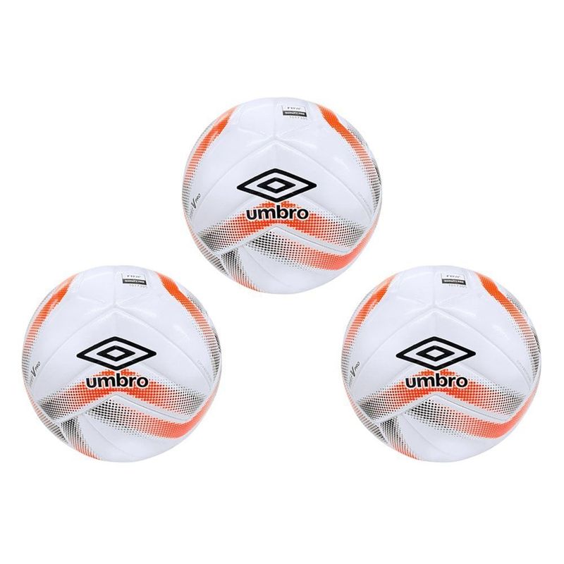 Descrição:O Kit 3 Bolas Umbro Sala V Pro, é ideal para partidas de futsal de alto nível. Testado por profissionais e certificado com o selo FIFA Quality Pro, o modelo contém construção híbrida inovadora com gomos em “V” e canaletas de baixa frequência promovendo melhor aerodinâmica e controle de jogo. O revestimento texturizado em PET sustentável assegura um toque refinado, enquanto a tecnologia DPS (Dual Pressure System) intensifica a sensibilidade e o controle nos dribles, passes e finalizações decisivas. Essa bola é o mesmo modelo usado nos jogos da LNF (Liga Nacional De Futsal). INFORMAÇÕES TÉCNICAS Modalidade: Futsal Referência: Mesmo modelo usado nos jogos da LNF (LIGA NACIONAL DE FUTSAL) Selo: Certificada com o selo FIFA Quality Pro Construção: Híbrida Gomos: 12 Tamanho: 4 Circunferência Aprox: 63 cm Calibragem indicada: 7-9 PSI Câmara interna: Em borracha Origem de produção: Importado. Material do corpo: 42% Borracha / 24% Poliéster / 23% EVA / 7% PU / 4% Algodão Tecnologia: DPS (Dual Pressure System) intensifica a sensibilidade e o controle nos dribles, passes e finalizações decisivas.