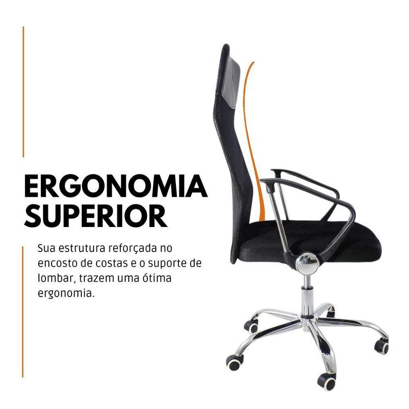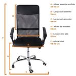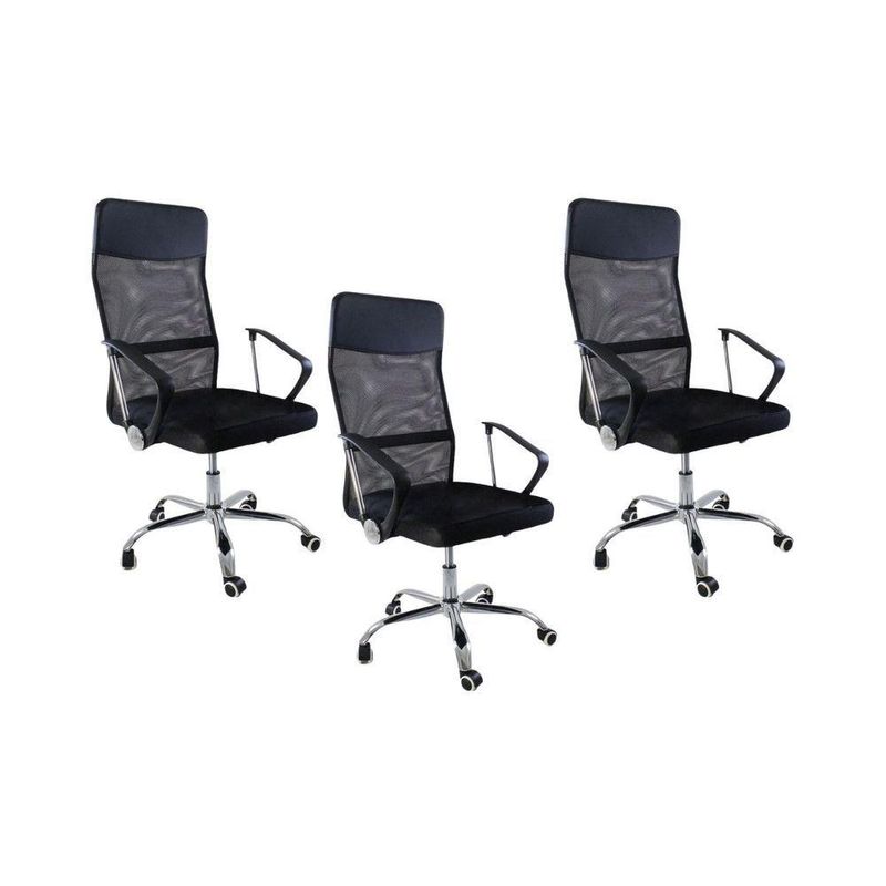 Kit 3 Cadeiras De Escritório Nagano Tela Mesh GiratóriaCadeira de Escritório Nagano Tela Mesh GiratóriaDesign moderno, conforto duradouro e funcionalidade inteligente.A Cadeira Nagano foi desenvolvida para quem valoriza ergonomia e estilo no ambiente de trabalho. Seu encosto alto com revestimento em tela mesh respirável proporciona ventilação contínua, enquanto o assento com ajuste de altura e base giratória garante liberdade de movimentos e adaptação à sua rotina.Além de prática, sua estrutura combina resistência e leveza, com materiais selecionados para oferecer durabilidade e conforto durante longos períodos de uso.Montagem descomplicada: acompanha manual de instruções e suporte da nossa equipe especializada sempre que necessário.Dimensões:Altura total: 110 a 118 cm Altura do assento ao chão: 40,5 a 49,5 cm Altura do braço ao chão: 63 a 68 cm Altura do encosto: 68 cm Altura do braço: 23 cmLargura do assento: 51 cm Largura entre os braços: 64 cm Largura do encosto: 48,5 cm Largura de uma perna: 31 cm Largura entre duas pernas: 62 cm Largura do braço: 5,5 cmProfundidade do assento: 52 cm Profundidade do encosto: 2,5 cm Comprimento do braço: 34 cmPeso da cadeira: 8 kgCapacidade de carga: até 120 kgMateriaisEstrutura: Nylon com base em aço cromadoRevestimento do encosto: Tela Mesh (nylon respirável)Braços: Polipropileno (PP)Assento: Madeira multilaminadaA Cadeira Nagano é a escolha ideal para transformar seu espaço de trabalho com conforto, sofisticação e praticidade.