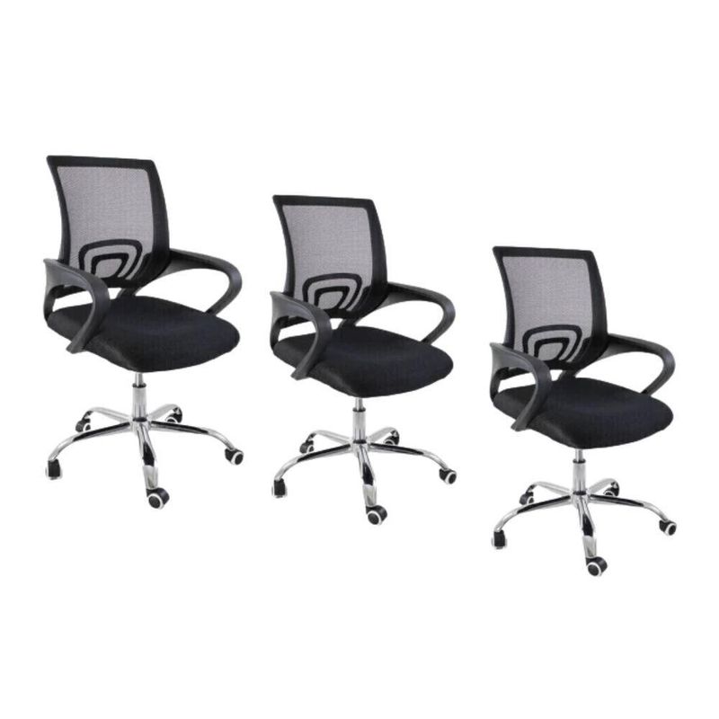 Kit 3 Cadeiras De Escritório Oficial Begonia Mesh GiratóriaCadeira de Escritório Begonia Tela MeshSinta a diferença de trabalhar com conforto e estilo.A Cadeira Begonia foi desenvolvida para acompanhar o seu ritmo diário, seja no escritório ou no home office. Seu encosto fixo com suporte lombar e revestimento em Tela Mesh respirável garantem ergonomia, ventilação e postura correta durante longas horas de uso.Com ajuste de altura, base giratória e design leve, ela combina praticidade, modernidade e bem-estar em um só produto.Fácil de montar, acompanha manual de instruções e, se precisar, nossa equipe está sempre pronta para ajudar.Dimensões:Altura:Total: 90–100 cmDo braço ao chão: 63–75 cm Do assento ao chão: 46–58 cm Encosto: 48 cm Braço: 28 cm Largura:1 perna: 25 cm 2 pernas: 50 cm Assento: 45 cm Encosto: 40,5 cm Braço: 4,5 cm Entre braços: 54 cm Comprimento:Encosto: 2 cm Assento: 47,5 cm Braço: 30 cm Peso: 5,5 kgEspecificações Técnicas:Estrutura: Nylon e aço cromado Revestimento: Nylon e tela Mesh Braços: Polipropileno Assento: Madeira multilaminada Peso máximo suportado: 120 kgAcompanha E-book!