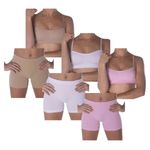 Descrição:Com o Kit 3 Conjuntos Top + Calcinha Selene Sem Costura Infantil o guarda-roupas das mocinhas ficará mais diverso e elas ficarão bem mais confortáveis no dia a dia. O top confeccionado em poliamida com elastano proporciona leveza, maciez e toque macio ao contato com a pele. Possui alças finas, barra em tecido elástico duplo que mantém o top no lugar e pregueado centralizado que dá mais chame para a peça. A calcinha confeccionada em microfibra de poliéster e elastano, possui toque macio e confortável. A peça de modelagem boxer, com cintura baixa e barra com elástico em tecido duplo, conta com cós em tecido elástico para melhor ajuste ao corpo. Desenvolvida sem costura, esta calcinha não marca sob a roupa, deixando as mocinhas mais elegantes. Cores: nude, branco e rosa. Medidas aproximadas (cm) - top: 6 a 8 anos: 24x10 / 9 a 10 anos: 26x12 / 11 a 12 anos: 28x14. Medidas aproximadas (cm) - calcinha: 6 a 8 anos-25x20 / 9 a 10 anos-27x22 /11 a 12 anos-29x24 Largura x comprimento. INFORMAÇÕES: Composição top: 89% poliamida, 8% elastano e 3% polipropileno Decote: U Composição calcinha: 89% poliamida, 8% elastano Tipo: boxer