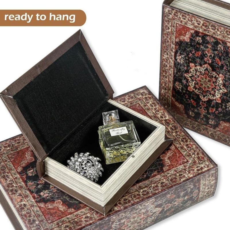 Kit 3 Livro Camuflado Book Cofre Decorativo Fake Porta Joias Documentos Caixa Organizador Madeira Magnetico Retro VintagConjunto de 3 Caixas Livros Decorativas - Couro Sintético ResistenteAdicione sofisticação e funcionalidade ao seu ambiente com este conjunto de caixas em formato de livro. Feitas com couro sintético à prova d?água e estrutura de madeira forte, garantem durabilidade e resistência, sem o uso de materiais frágeis como papelão ou plástico.Destaques do Produto:Design Autêntico e Elegante: Ideal para combinar com a decoração de sua casa, escritório ou biblioteca.Compartimento Secreto: Perfeito para guardar objetos de valor, lembranças, documentos, joias e muito mais.Forro Interno com Fecho Magnético: Mantém seus pertences seguros e discretamente armazenados.Material Premium: Estrutura robusta de madeira, revestimento em couro sintético e acabamento refinado.Dimensões do Conjunto:Grande: 27 x 22 x 7 cmMédio: 22 x 19 x 6 cmPequeno: 18 x 12 x 4 cmVersatilidade e Uso:Organização e decoração para estantes, mesas e prateleiras.Ideal para esconder objetos de valor como documentos, cartas, joias e chaves.Perfeito para armazenar receitas, diários e memórias especiais.Um presente sofisticado para quem ama itens decorativos funcionais.Com esse conjunto de caixas em formato de livro, sua decoração ganha um toque clássico e organizado, além de proporcionar um espaço discreto para armazenar seus pertences.Acessórios e objetos não inclusosConjunto de 3 Caixas Livros Decorativas - Couro Sintético ResistenteAdicione sofisticação e funcionalidade ao seu ambiente com este conjunto de caixas em formato de livro. Feitas com couro sintético à prova d?água e estrutura de madeira forte, garantem durabilidade e resistência, sem o uso de materiais frágeis como papelão ou plástico.Destaques do Produto:Design Autêntico e Elegante: Ideal para combinar com a decoração de sua casa, escritório ou biblioteca.Compartimento Secreto: Perfeito para guardar objetos de valor, lembranças, documentos, joias e muito mais.Forro Interno com Fecho Magnético: Mantém seus pertences seguros e discretamente armazenados.Material Premium: Estrutura robusta de madeira, revestimento em couro sintético e acabamento refinado.Dimensões do Conjunto:Grande: 27 x 22 x 7 cmMédio: 22 x 19 x 6 cmPequeno: 18 x 12 x 4 cmVersatilidade e Uso:Organização e decoração para estantes, mesas e prateleiras.Ideal para esconder objetos de valor como documentos, cartas, joias e chaves.Perfeito para armazenar receitas, diários e memórias especiais.Um presente sofisticado para quem ama itens decorativos funcionais.Com esse conjunto de caixas em formato de livro, sua decoração ganha um toque clássico e organizado, além de proporcionar um espaço discreto para armazenar seus pertences.Acessórios e objetos não inclusos