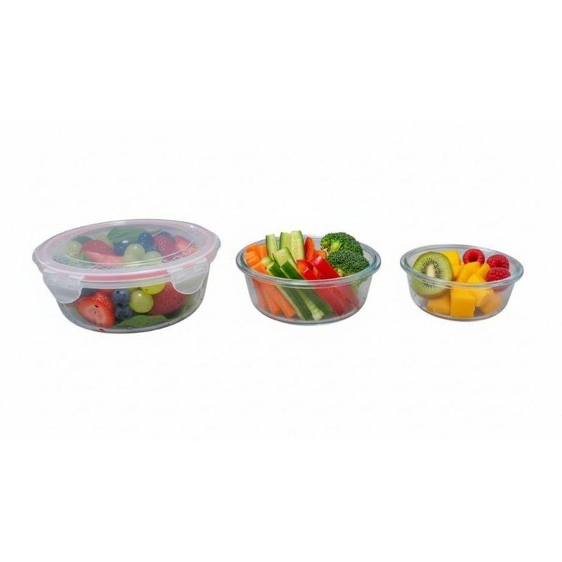 Kit 3 Potes Hermético Redondo Multiuso Conjunto Com TampaOrganize sua cozinha com muito mais praticidade, higiene e eficiência!. Este conjunto é composto por potes redondos de alta qualidade, ideais para armazenar diversos tipos de alimentos como frutas, legumes, grãos, sobras de refeições ou marmitas. Seu sistema de vedação hermética garante máxima conservação, impedindo a entrada de ar, umidade e odores externos, mantendo seus alimentos frescos por muito mais tempo. Os potes são totalmente livres de BPA e podem ser usados com segurança no freezer e no micro-ondas, oferecendo versatilidade para o seu dia a dia. Além disso, são empilháveis, otimizando o espaço dentro da geladeira ou nos armários. Seu design arredondado é moderno e funcional, com tampas transparentes que facilitam a visualização do conteúdo. Prático, seguro e durável, a escolha ideal para quem busca mais organização e eficiência na cozinha sem abrir mão da qualidade. Perfeito para uso doméstico ou profissionalItens Inclusos:-01 Pote 320ml-01 Pote 580ml-01 Pote 1000mlEspecificações:Dimensões: Pote 320ml: 6cm altura x 11,5cm largura x 11,5cm comprimento / Pote 580ml: 6cm altura x 14,5cm largura x 14,5cm comprimento / Pote 1000ml: 7cm altura x 17,5cm largura x 17,5cm comprimentoComposição: PlásticoPeso Conjunto: 300gCor: Pote Transparente e Tampa com detalhe RosaContém:01 Conjunto 3 Pote Hermético Redondo Multiuso com Tampa