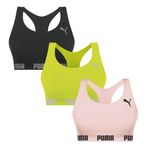 ModaVestuário EsportivoTop EsportivoKit 3 Tops Puma Nadador Sem Costura - Preto, Limão e Rosa