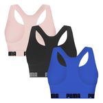 Descrição:O Kit 3 Tops Puma Nadador Sem Costura, é ideal para usar por baixo de regatas para treinos e dia a dia. Confeccionados em poliamida, poliéster e elastano, estes tops trazem toque suave a pele e maior conforto por não possuírem bojo e nem costuras. Contam com alças grossas, decote em U, e costas com modelagem nadador. Medidas aproximadas (cm): P-30x12/M-32x14/G-34x16/EG-36x18 (largura x comprimento do busto).). INFORMAÇÕES: Referência: 2707000. Composição: 96% modal, 4% elastano Bojo: Não possui Decote: U Estilo de peça: lisa com logo Gênero: feminino TABELA INFORMATIVA DE TAMANHO: P-36 ao 42 M-40 ao 42 G-44 ao 46 GG-48 ao 50