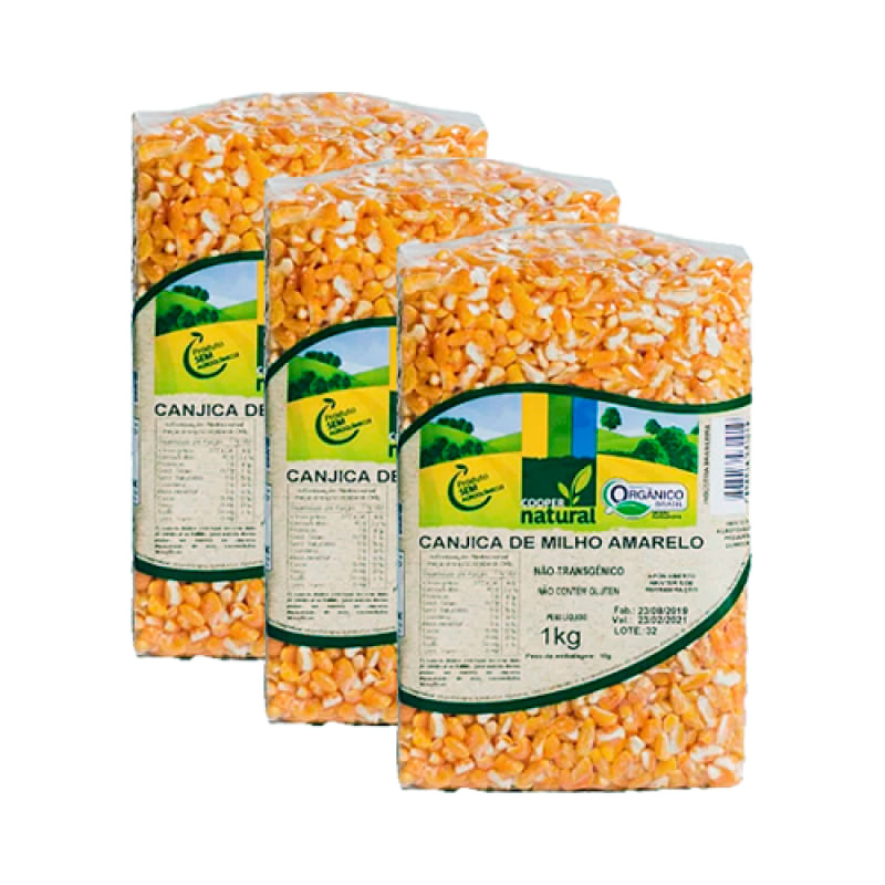 MercadoAlimentosKit 3X: Canjica de Milho Amarelo Orgânico Coopernatural 1kg