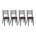Kit 4 Cadeiras Cp34 Pintadas Pretas Debrum Treparoni Preto Com MarromJa imaginou uma cadeira linda e confortavel que agrega beleza a decoracao e ainda faz com que as suas refeicoes sejam mais prazerosas?O Kit com 4 Cadeiras Treparoni com acabamento em pintura epoxi e uma excelente opcao para deixar a sua sala de jantar ou cozinha mais aconchegante e com um visual elegante, alem de ter um assento extremamente confortavel! Caracteristicas: Marca: Treparoni Modelo: CP34 Tipo de cadeira: Fixa Material da estrutura: Metal Espessura do material da estrutura: 31,75 mm Material do enchimento do assento: Espuma D23 Espessura do material da estrutura do assento: 15 mm Material do revestimento do assento: Corino Material da estrutura do encosto: Metal Espessura do material da estrutura do encosto: 15,87 mm Material do enchimento do encosto: Metal tubular Material do revestimento do encosto: Tubo Material dos pes: Metal Tipo de pe: Fixo Numeros de pes: 04 Altura do assento ate o chao: 50 cm Cadeira giratoria: Nao Acabamento: Epoxi Preto Peso recomendado (Por pessoa): 120 Kg Conteudo da Embalagem: 01 Kit 4 Cadeiras CP34 Pintadas Pretas Debrum Treparoni 01 Manual de montagem detalhado Dimensoes: Altura: 89 cm Largura: 42 cm Profundidade: 46 cm Peso: 4,5 Kg Garantia do Fornecedor: 03 meses (Contra defeito de fabricacao a contar do momento da emissao da Nota Fiscal). Cuidados!! Limpeza: Deve ser feita com pano macio e seco ou levemente umedecido com agua e sabao neutro. Nao devem ser utilizados abrasivos como palha de aco e objetos cortantes.