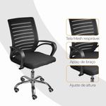 Kit 4 Cadeiras De Escritório Diretor Roma OficialCadeira de Escritório Secretaria Diretor Roma – Conforto, Ergonomia e Estilo para o Seu Dia a DiaA Cadeira de Escritório Secretaria Diretor Roma da Oficial Webshop é a escolha perfeita para quem busca aliar bem-estar, praticidade e design moderno. Desenvolvida para oferecer suporte ergonômico e conforto prolongado, ela é ideal para escritórios corporativos, home offices ou ambientes de estudo.Com estrutura resistente e revestimento em tela Mesh respirável, proporciona ventilação contínua e adaptação perfeita à postura do corpo, garantindo conforto durante longas horas de uso. Seu sistema de ajuste de altura permite personalizar a posição ideal em relação à mesa, enquanto os apoios de braço e a base giratória com rodízios garantem mobilidade, estabilidade e funcionalidade no dia a dia.A montagem é simples e rápida — acompanha manual de instruções e suporte de atendimento especializado da equipe Oficial Webshop. Diferenciais do ProdutoDesign Ergonômico e Moderno: Encosto curvado e estrutura leve que proporcionam conforto e postura correta.Conforto Ajustável: Regulagem de altura que se adapta perfeitamente à mesa de trabalho.Encosto em Tela Mesh: Revestimento respirável que mantém o frescor e evita desconforto térmico.Apoios de Braço Anatômicos: Desenvolvidos para melhorar a postura e reduzir a fadiga dos ombros e braços.Mobilidade 360º: Base giratória com rodízios que garantem movimentação fácil e suave.Estrutura Reforçada: Produzida em nylon e aço cromado para resistência e durabilidade.Extras: Acompanha e-book exclusivo. Especificações TécnicasModelo: Secretaria Diretor RomaMarca: Oficial WebshopTipo de Cadeira: Escritório / Home Office / CorporativaEstrutura: Nylon e Aço CromadoRevestimento: Tela Mesh e NylonBraços: Polipropileno ergonômicoAssento: Madeira multilaminadaAltura Total: AjustávelPeso do Produto: 5,5 kgPeso Máximo Suportado: 120 kgUso: InternoGarantia: 3 meses Cuidados e ManutençãoLimpe com pano macio levemente umedecido e finalize com pano seco.Evite o uso de produtos abrasivos e mantenha em locais secos e protegidos da umidade ou da exposição direta ao sol para conservar o acabamento e prolongar a vida útil do produto. Ergonomia e Estilo em Cada Detalhe!A Cadeira Secretaria Diretor Roma é ideal para quem busca conforto, funcionalidade e design elegante.Com estrutura durável, regulagem prática e encosto ergonômico, ela transforma qualquer ambiente de trabalho em um espaço moderno, produtivo e cheio de estilo.