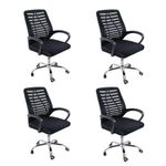 Kit 4 Cadeiras De Escritório Esteirinha Mesh Ergonômica GiratóriaCadeira de Escritório Esteirinha Tela Mesh – Conforto, Leveza e Ergonomia para o Dia a DiaA Cadeira Esteirinha Tela Mesh foi desenvolvida para oferecer praticidade, ventilação e conforto para quem passa longas horas sentado. Com design leve, estrutura funcional e recursos essenciais de ergonomia, ela é ideal para escritórios, home office e ambientes de estudo que exigem mobilidade e bem-estar.Seu encosto em tela Mesh respirável garante excelente circulação de ar, reduzindo o acúmulo de calor durante o uso prolongado. O assento possui estrutura resistente em madeira multilaminada e revestimento confortável para tornar sua rotina mais agradável.Com ajuste de altura, sistema giratório e rodízios de movimentação suave, a Esteirinha oferece a versatilidade que o seu dia a dia precisa, ao mesmo tempo em que os apoios de braço fixos contribuem para uma postura mais estável e confortável.Disponível nas cores preta e branca, para combinar com diferentes estilos de ambiente.Conforto, Mobilidade e Ergonomia EssencialEncosto em tela Mesh respirável, proporcionando ventilação contínua.Assento com estrutura resistente e formato ergonômico para maior conforto ao longo do dia.Apoios de braço fixos que auxiliam na postura durante reuniões, atividades de escrita e uso de computador.Sistema giratório com rotação de 360º, oferecendo liberdade de movimento.Regulagem de altura que permite ajustar a postura ideal de acordo com sua mesa de trabalho.Rodízios resistentes e silenciosos, garantindo deslocamento suave no ambiente.Acompanha e-book exclusivo como material adicional.Medidas do ProdutoAlturaTotal: 89–97 cmAssento ao chão: 58–67 cmAltura do encosto: 51 cmAltura do braço: 23 cmLarguraBase 1 perna: 25 cmBase 2 pernas: 50 cmEncosto: 47 cmAssento: 46 cmDistância entre braços: 61 cmLargura do braço: 5 cmComprimentoEspessura do encosto: 2 cmAssento: 45,5 cmBraço: 32 cmInformações TécnicasPeso: 5 kgEstrutura: Nylon e aço cromadoRevestimento: Nylon e tela MeshBraços: PolipropilenoAssento: Madeira multilaminadaPeso máximo suportado: 120 kgCores disponíveis: Preto e BrancoLeveza, Funcionalidade e Conforto ao Seu AlcanceA Cadeira Esteirinha Tela Mesh é a escolha ideal para quem busca uma cadeira prática, arejada e confortável para uso diário.Combinando mobilidade, ergonomia e um design versátil, ela se adapta facilmente a diferentes ambientes — sempre entregando bem-estar e desempenho.