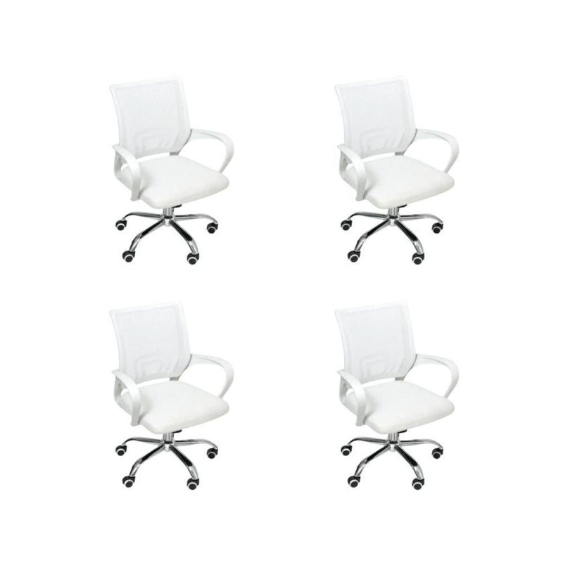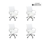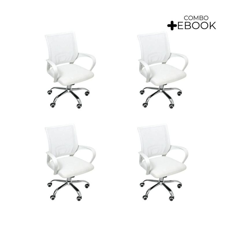 Kit 4 Cadeiras De Escritório Oficial Begonia Tela Mesh Ergonômica BrancoCadeira De Escritório Tela Mesh Begonia Ergonômica GiratóriaA escolha de uma cadeira adequada desempenha um papel crucial na prevenção de possíveis lesões. Com a cadeira Begônia, você garante o conforto e bem-estar essenciais para suas atividades diárias. Além disso, sua versatilidade permite que ela se encaixe perfeitamente em diversos ambientes, seja em casa, no escritório ou home office, proporcionando um toque moderno e harmonioso.Personalização para seu confortoAproveite ao máximo o ajuste de altura desta cadeira. Isso lhe permitirá adaptar a posição do seu tronco em relação à mesa, proporcionando um nível de conforto específico para suas necessidades individuais.Promovendo o bem-estarOs apoios de braço foram cuidadosamente projetados para melhorar sua postura enquanto escreve, facilitando a incorporação natural quando necessário.Mobilidade sem esforçoAs rodas integradas garantem facilidade de movimento em seu espaço. Você não só poderá movê-la com tranquilidade, mas também desfrutará da conveniência das rotações de 360º, eliminando a necessidade de reajustar sua posição ou deslocar-se fisicamente. Escolha a cadeira Begônia para elevar seu conforto e eficiência, enquanto cuida do seu corpo e do seu ambiente de trabalho, estudo ou lazer.AlturaTotal: 100-90 cmBraço até o chão: 75-63 cmAssento até o chão: 58-46 cmEncosto: 48 cmBraço: 28 cmLargura1 Perna: 25 cm2 Pernas: 50 cmAssento: 45 cmEncosto: 40,5 cmBraço: 4,5 cmDe um braço ao outro: 54 cmComprimentoEncosto: 2 cmAssento: 47,5 cmBraço: 30 cmPeso: 5,5 kgEstrutura: Nylon e aço cromadoRevestimento: Nylon, Tela MeshBraço: PolipropilenoAssento: Madeira multilaminadaPeso máximo recomendado: 120 KgAcompanha E-book Exclusivo!