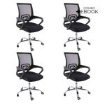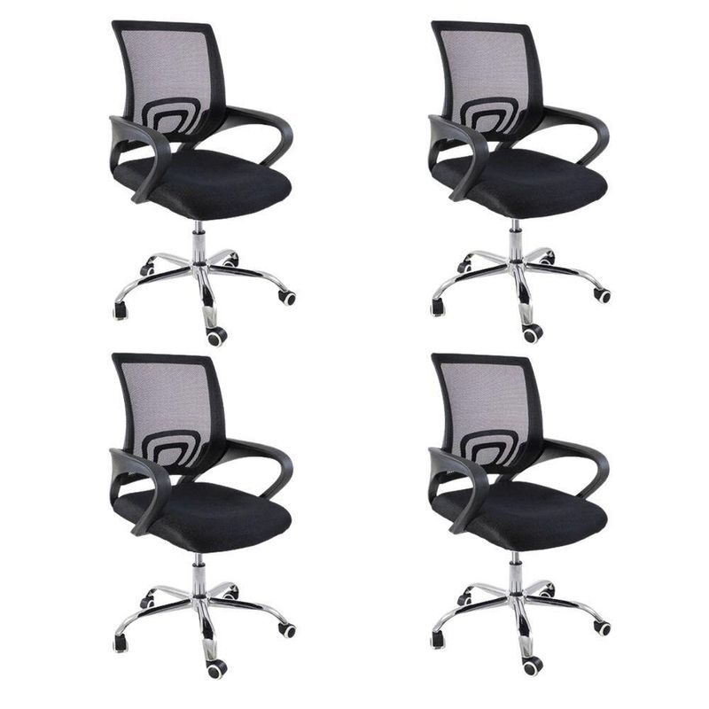 Kit 4 Cadeiras De Escritório Oficial Begonia Tela Mesh Ergonômica PretoCadeira De Escritório Tela Mesh Begonia Ergonômica GiratóriaA escolha de uma cadeira adequada desempenha um papel crucial na prevenção de possíveis lesões. Com a cadeira Begônia, você garante o conforto e bem-estar essenciais para suas atividades diárias. Além disso, sua versatilidade permite que ela se encaixe perfeitamente em diversos ambientes, seja em casa, no escritório ou home office, proporcionando um toque moderno e harmonioso.Personalização para seu confortoAproveite ao máximo o ajuste de altura desta cadeira. Isso lhe permitirá adaptar a posição do seu tronco em relação à mesa, proporcionando um nível de conforto específico para suas necessidades individuais.Promovendo o bem-estarOs apoios de braço foram cuidadosamente projetados para melhorar sua postura enquanto escreve, facilitando a incorporação natural quando necessário.Mobilidade sem esforçoAs rodas integradas garantem facilidade de movimento em seu espaço. Você não só poderá movê-la com tranquilidade, mas também desfrutará da conveniência das rotações de 360º, eliminando a necessidade de reajustar sua posição ou deslocar-se fisicamente. Escolha a cadeira Begônia para elevar seu conforto e eficiência, enquanto cuida do seu corpo e do seu ambiente de trabalho, estudo ou lazer.AlturaTotal: 100-90 cmBraço até o chão: 75-63 cmAssento até o chão: 58-46 cmEncosto: 48 cmBraço: 28 cmLargura1 Perna: 25 cm2 Pernas: 50 cmAssento: 45 cmEncosto: 40,5 cmBraço: 4,5 cmDe um braço ao outro: 54 cmComprimentoEncosto: 2 cmAssento: 47,5 cmBraço: 30 cmPeso: 5,5 kgEstrutura: Nylon e aço cromadoRevestimento: Nylon, Tela MeshBraço: PolipropilenoAssento: Madeira multilaminadaPeso máximo recomendado: 120 KgAcompanha E-book Exclusivo!