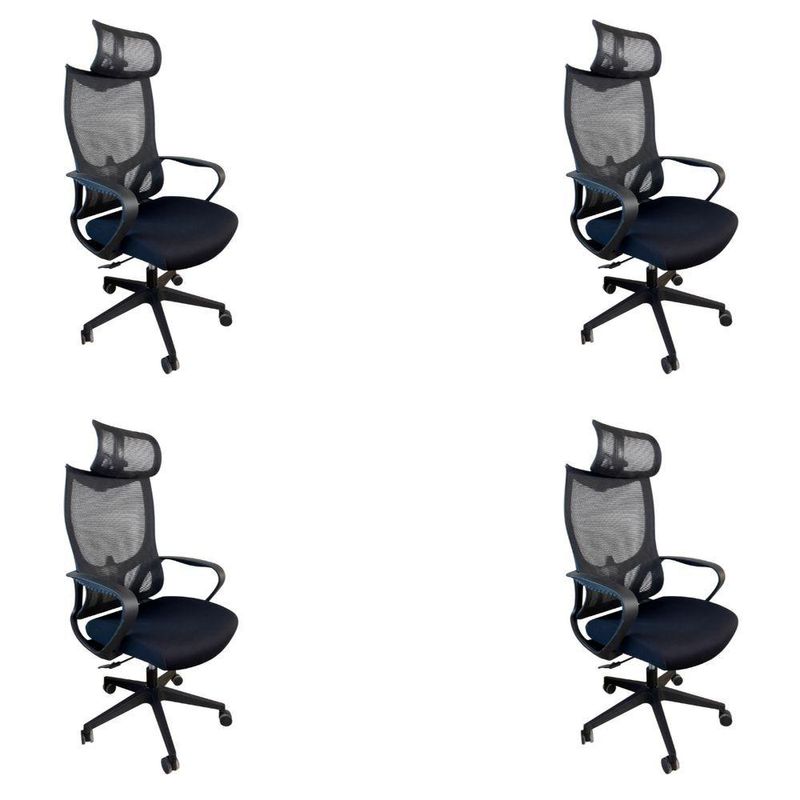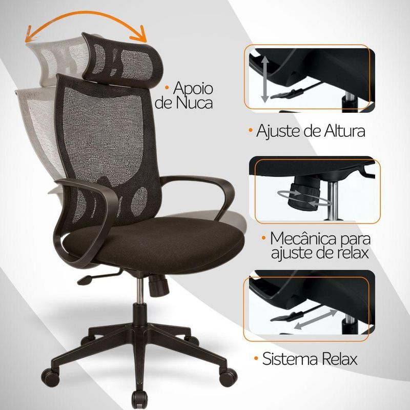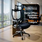 Kit 4 Cadeiras De Escritório Presidente Ergonômica Oficial Corporativa Verona Apoio NucaCadeira Presidente Oficial Comfort Verona com Apoio de NucaDesign ergonômico, conforto inteligente e estilo profissional.Projetada para quem exige conforto e postura durante longas horas de trabalho, a Cadeira Comfort Verona entrega ergonomia de ponta, materiais de qualidade e visual moderno.O encosto é revestido em tecido Mesh Premium, composto por 64% de poli elastômero e 36% de poliéster. Já o assento conta com espuma 35D, revestida em tecido 100% poliéster.Atende aos requisitos da NR-17. Além disso, possui o cobiçado selo BIFMA de qualidade, garantindo durabilidade e desempenho excepcionais!Garantia de 2 anos!Diferenciais do Produto:Encosto com curvatura em “S” – Segue a anatomia da coluna, oferecendo suporte lombar natural.Apoio de cabeça multi-regulável – Ajuste de altura e ângulo para aliviar tensões cervicais.Apoio de braços fixos – Em PP virgem com fibra de vidro, alta resistência e acabamento sofisticado.Assento anatômico – Espuma moldada de alta resiliênciaMecanismo butterfly – Curso médio de 25 mm, flexível e confiável.Pistão a gás preto #85 – Curso de 40 mm para ajuste de altura suave.Base em nylon Ø 320 mm – Leve, resistente com fibra de vidro.Rodízios de nylon Ø 55 mm – Movimentação fluida e silenciosa.Dimensões Aproximadas:Altura total: 100 a 110 cmAltura do assento até o chão: 34 a 50 cmLargura entre braços: 59 cmLargura do assento: 49 cmProfundidade do assento: 51 cmAltura dos braços: 28 cmDistância entre os pés: 67 cmAltura do encosto: 18 cmLargura do encosto: 35 cmIdeal para home office, escritórios executivos ou salas de reunião, a Comfort Verona une ergonomia, leveza e elegância em uma só cadeira.Conforto e produtividade ao seu alcance com a Comfort Verona.
