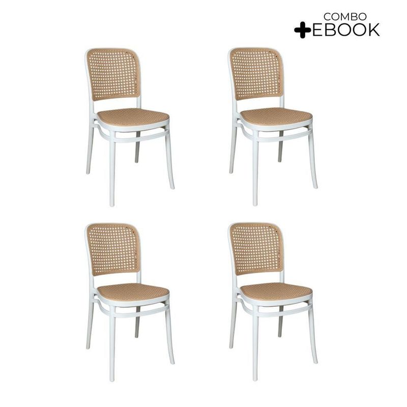 Kit 4 Cadeiras De Jantar Roma Para Sala E Cozinha Branco Cadeira de Jantar Roma para Sala e Cozinha BrancoDesign e EstiloCom visual moderno e elegante, a Cadeira Roma traz um toque sofisticado à decoração. Seu encosto e assento apresentam leve inclinação ergonômica, garantindo conforto duradouro durante as refeições ou nas conversas à mesa.Material e DurabilidadeProduzida 100% em polipropileno de alta qualidade, a cadeira oferece excelente resistência e durabilidade. Com peso aproximado de 5?kg, suporta até 120?kg e contribui para um ambiente agradável e funcional.Conforto e PraticidadeO assento e encosto foram ergonomicamente projetados para oferecer suporte e conforto prolongado. A limpeza é simples e rápida: basta um pano úmido para manter a peça com aspecto impecável.Dimensões e Especificações Técnicas:Altura total: 85?cmLargura total: assento varia entre 34?cm a 41,5?cmProfundidade total: 42?cmComprimento: 42 cmGarantiaContempla 3 meses de garantia contra defeitos de fabricação, reforçando a segurança da sua compra. Destaques Característica: Benefício:Polipropileno Premium - Leveza, resistência e fácil manutençãoSuporta até 120?kg - Uso seguro e estabilidade para várias pessoasProjeto ergonômico - Conforto prolongado, ideal para refeições e lazerMedidas compactas - Facilmente encaixável em diferentes ambientesGarantia de fábrica - Assistência rápida e confiávelIdeal para: Salas de jantar, cozinhas gourmet, varandas, áreas de lazer ou ambientes de estar. Perfeita para quem busca design contemporâneo aliado à funcionalidadeAcompanha E-book!