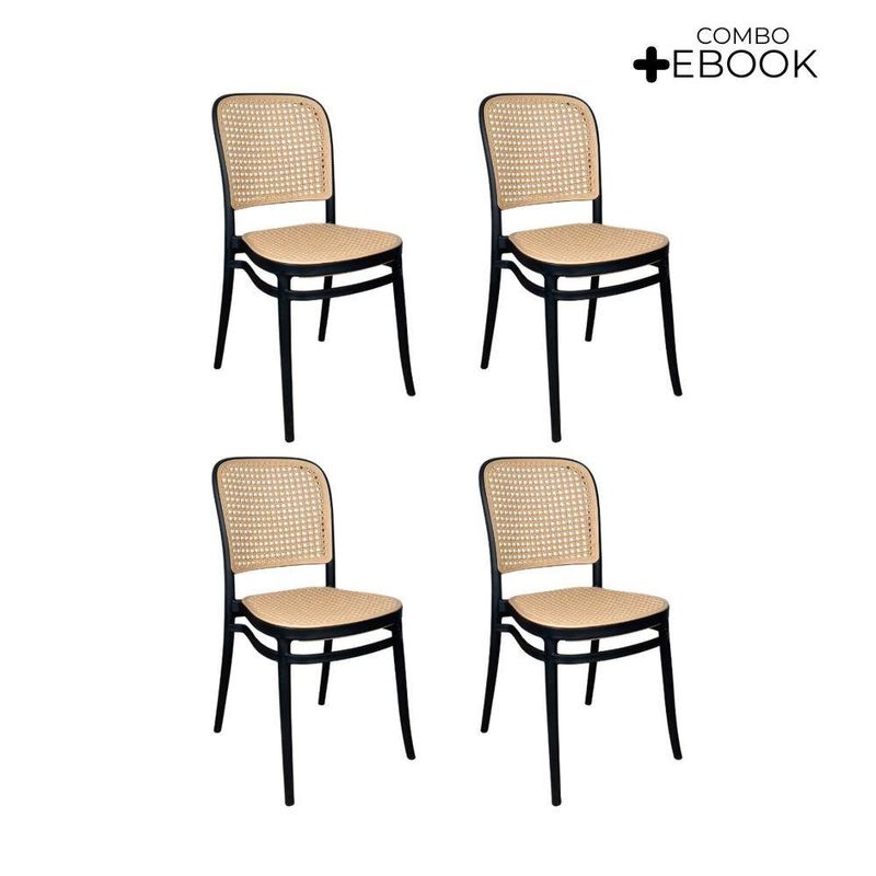 Kit 4 Cadeiras De Jantar Roma Para Sala E Cozinha Preto Cadeira de Jantar Roma para Sala e Cozinha PretoDesign e EstiloCom visual moderno e elegante, a Cadeira Roma traz um toque sofisticado à decoração. Seu encosto e assento apresentam leve inclinação ergonômica, garantindo conforto duradouro durante as refeições ou nas conversas à mesa.Material e DurabilidadeProduzida 100% em polipropileno de alta qualidade, a cadeira oferece excelente resistência e durabilidade. Com peso aproximado de 5?kg, suporta até 120?kg e contribui para um ambiente agradável e funcional.Conforto e PraticidadeO assento e encosto foram ergonomicamente projetados para oferecer suporte e conforto prolongado. A limpeza é simples e rápida: basta um pano úmido para manter a peça com aspecto impecável.Dimensões e Especificações Técnicas:Altura total: 85?cmLargura total: assento varia entre 34?cm a 41,5?cmProfundidade total: 42?cmComprimento: 42 cmGarantiaContempla 3 meses de garantia contra defeitos de fabricação, reforçando a segurança da sua compra. Destaques Característica: Benefício:Polipropileno Premium - Leveza, resistência e fácil manutençãoSuporta até 120?kg - Uso seguro e estabilidade para várias pessoasProjeto ergonômico - Conforto prolongado, ideal para refeições e lazerMedidas compactas - Facilmente encaixável em diferentes ambientesGarantia de fábrica - Assistência rápida e confiávelIdeal para: Salas de jantar, cozinhas gourmet, varandas, áreas de lazer ou ambientes de estar. Perfeita para quem busca design contemporâneo aliado à funcionalidadeAcompanha E-book!