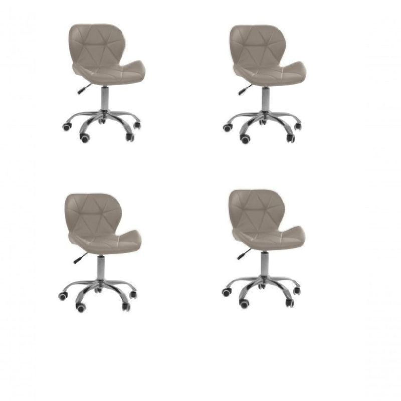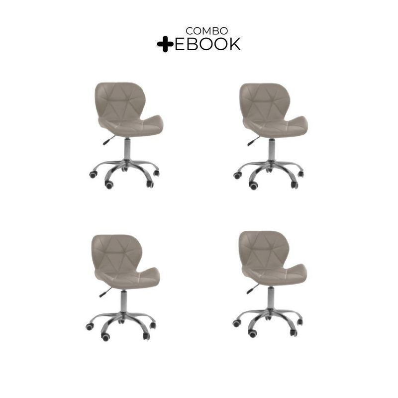 Kit 4 Cadeiras Office Eiffel Slim Ajustável Oficial BegeCadeira Office Eiffel Slim Base Giratória – Design, Versatilidade e Conforto para o Seu EspaçoDescubra o equilíbrio ideal entre modernidade, ergonomia e sofisticação com a Cadeira Office Eiffel Slim Base Giratória.Projetada para proporcionar conforto e estilo, ela se adapta facilmente a qualquer ambiente— seja escritório, home office, sala de jantar ou espaço comercial — oferecendo funcionalidade e elegância em cada detalhe.Com assento anatômico revestido em couro sintético e estrutura em polipropileno de alta resistência, a Eiffel Slim alia durabilidade e design contemporâneo. Sua base cromada com rodízios e ajuste de altura garante mobilidade suave e personalização de uso, tornando suas horas de trabalho ou estudo muito mais agradáveis.A montagem é prática e acompanha manual de instruções e suporte de atendimento especializado para qualquer dúvida. Diferenciais do ProdutoDesign Sofisticado: Visual moderno que combina com qualquer ambiente residencial ou corporativo.Estrutura Robusta: Produzida em polipropileno e aço cromado para maior resistência e durabilidade.Ajuste de Altura: Permite personalizar a posição ideal para o seu conforto e ergonomia.Base Giratória com Rodízios: Facilita a movimentação e proporciona praticidade no dia a dia.Revestimento Premium: Couro sintético de toque macio e acabamento refinado.Montagem Simples: Acompanha manual e suporte pós-venda especializado.Extras: acompanha e-book exclusivo. Especificações TécnicasModelo: Eiffel SlimMarca: Oficial WebshopTipo de Cadeira: Office / GiratóriaMaterial da Estrutura: Polipropileno e Aço CromadoRevestimento: Couro Sintético (PU)Assento: Madeira multilaminada revestidaBase: Giratória cromada com rodíziosPeso Máximo Suportado: 120 kgPeso da Cadeira: 6 kg Dimensões do ProdutoAltura Total (mín./máx.): 72 cm a 85,5 cmAltura do Assento (mín./máx.): 43 cm a 56,5 cmAltura do Encosto: 42 cmLargura do Assento: 48 cmProfundidade do Assento: 36,5 cmLargura Total (base): 47,5 cm Cuidados e ManutençãoLimpe com pano úmido e detergente neutro, evitando produtos abrasivos que possam danificar o revestimento.Evite exposição direta ao sol para preservar a cor e o brilho do couro sintético e da base cromada. Conforto e Estilo para o Seu Dia a Dia!A Cadeira Office Eiffel Slim Base Giratória é a combinação perfeita entre design contemporâneo e praticidade.Ideal para quem valoriza ambientes elegantes e funcionais, ela oferece conforto, resistência e versatilidade para qualquer espaço.