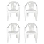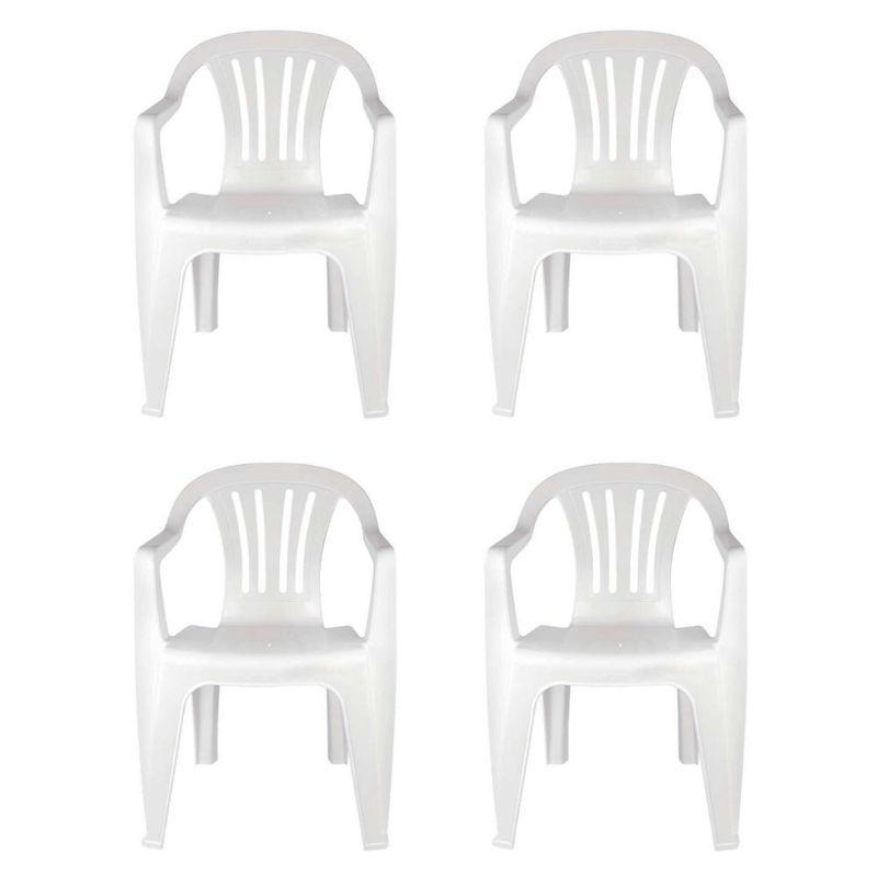 Kit 4 Cadeiras Poltrona Plástica Empilhavel Reforçada Branca 182kg Mor As Poltronas Plásticas vem para compor a linha de móveis injetados da Mor. Com excelente acabamento, elas passam por rigorosos testes de qualidade e segurança para receber o certificado do INMETRO através da norma ABNT 14776 e portarias 341 e 342 de 22 de julho de 2014, na categoria de Produto B, uso irrestrito. Produzidas em polipropileno com material 100% virgem, possuem proteção contra raios UV, o que garante maior durabilidade. Muito versáteis, as poltronas podem ser usadas à beira da praia, no camping, dentro ou fora de casa e, muito resistentes, suportam até 182 Kg. Com encosto para os braços, são confortáveis e muito leves para transportar. Também permite que sejam empilhadas, facilitando seu armazenamento. Um produto com a garantia de qualidade Mor! Descrição do produtoMarca: MorConteúdo: 04 un da Poltrona Plástica Branca MorMaterial: PolipropilenoCapacidade: 182 kgAltura 81,50 cmComprimento 56,00 cmLargura 57,00 cmPeso 2,45 kg Imagens meramente ilustrativas, todos os itens que ambientam o produto não estão inclusos.