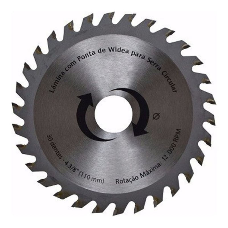 Kit 4 Discos De Serra Circular Com 30 Dentes 110mm - O Disco de serra circular é ideal para cortar madeira, Alumínio, Plásticos Especificações Técnicas Diâmetro externo: 110mm Dentes: 30 Conteúdo da Embalagem: 04 Discos de serra circular 30 Dentes. Características Gerais do Produto: • Material: Metal • Modelo: 30 Dentes 110mm Garantia: • Garantia do site - 1 Mês