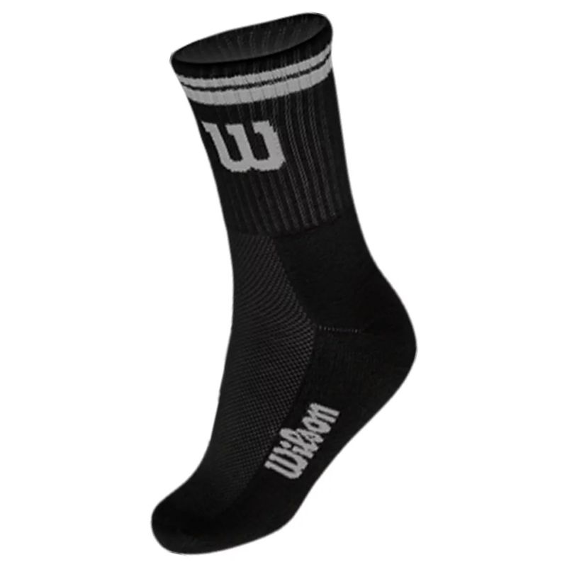 Descrição:O Kit 4 Pares de Meias Wilson Cano Longo é ideal para os tenistas que buscam conforto e desempenho durante as partidas. Confeccionadas em algodão, poliamida e elastano, as peças promovem toque macio e leveza aos pés, além de serem duráveis e resistentes. A barra elástica mantém o produto firme e perfeitamente ajustado. Exibe o icônico logo da Wilson em cor contrastante no cano. Tamanho: 39-34. INFORMAÇÕES: Referência: B2412405. Composição MESCLA: 51% algodão, 29% poliamida, 17% poliamida e 3% elastano. Composição OURAS CORES: 68% algodão, 29% poliamida, 3% elastano. Altura do Cano: Longo Indicado para: Tênis / Treinos / Dia a dia.