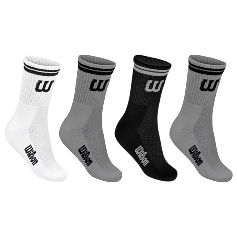 Descrição:O Kit 4 Pares de Meias Wilson Cano Longo é ideal para os tenistas que buscam conforto e desempenho durante as partidas. Confeccionadas em algodão, poliamida e elastano, as peças promovem toque macio e leveza aos pés, além de serem duráveis e resistentes. A barra elástica mantém o produto firme e perfeitamente ajustado. Exibe o icônico logo da Wilson em cor contrastante no cano. Tamanho: 39-34. INFORMAÇÕES: Referência: B2412405. Composição MESCLA: 51% algodão, 29% poliamida, 17% poliamida e 3% elastano. Composição OURAS CORES: 68% algodão, 29% poliamida, 3% elastano. Altura do Cano: Longo Indicado para: Tênis / Treinos / Dia a dia.