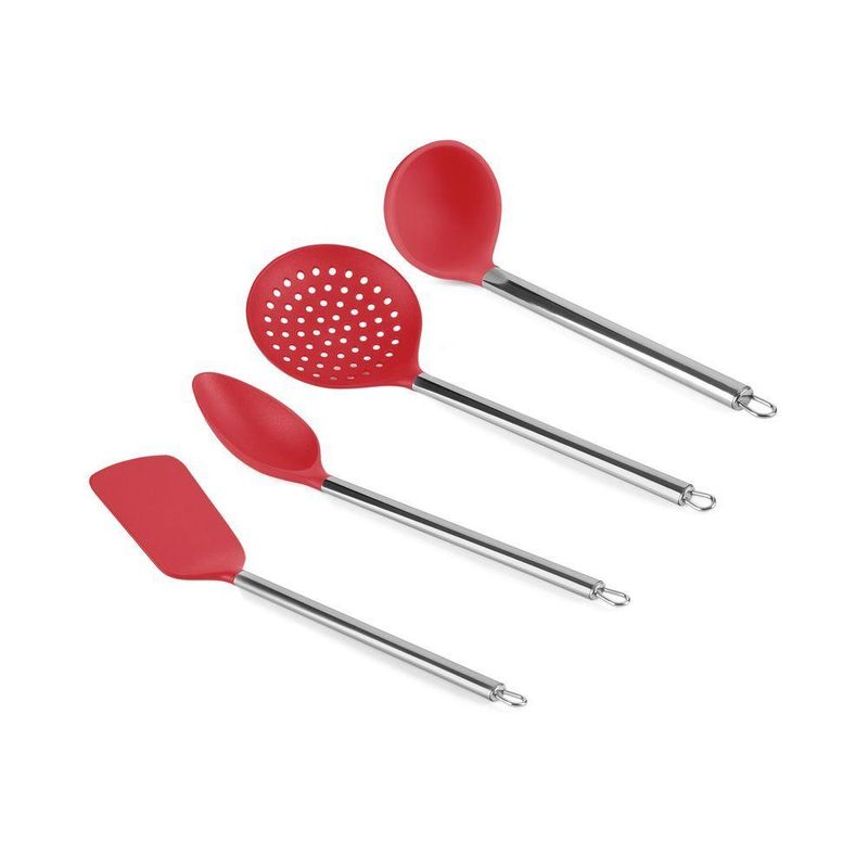Kit 4 Peças Utensilios Para Cozinha VermelhoA Espátula de Nylon da Plasvale é o acessório indispensável para sua cozinha. Resistente ao calor de até 110º, é fácil de limpar e ideal para panelas e frigideiras antiaderentes. Sua haste em metal com acabamento cobre dão um charme a peça. Além da funcionalidade, podem ser dispostas em sua cozinha e decorar o ambiente. Perfeita para cozinhar e servir. Beleza e delicadeza para sua casa! Adquira também a Concha de Nylon, Colher de Nylon e Escumadeira de Nylon e tenha uma cozinha completa!Dimensões: 31x8,2x5cm (Comprimento x Largura x Altura)Peso: 0,060KgA Colher de Nylon da Plasvale é o acessório indispensável para sua cozinha. Resistente ao calor de até 110º, é fácil de limpar e ideal para panelas e frigideiras antiaderentes. Sua haste em metal com acabamento cobre dão um charme a peça. Além da funcionalidade, podem ser dispostas em sua cozinha e decorar o ambiente. Perfeita para cozinhar e servir. Beleza e delicadeza para sua casa! Adquira também a Concha, Espátula e Escumadeira de Nylon e tenha uma cozinha completa!Dimensões: 31x6x5cm (Comprimento x Largura x Altura)Peso: 0,046KgA Concha de Nylon da Plasvale é o acessório indispensável para sua cozinha. Resistente ao calor de até 110º, é fácil de limpar e ideal para panelas antiaderentes. Sua haste em metal com acabamento cobre dão um charme a peça. Além da funcionalidade, podem ser dispostas em sua cozinha e decorar o ambiente. Perfeita para você servir caldos, sopas e sobremesas. Beleza e delicadeza para sua casa! Adquira também a Colher, Espátula e Escumadeira de Nylon e tenha uma cozinha completa!Dimensões: 31x8,6x9cm (Comprimento x Largura x Altura)Peso: 0,064KgA Escumadeira de Nylon da Plasvale é o acessório indispensável para sua cozinha. Resistente ao calor de até 110º, é fácil de limpar e ideal para panelas antiaderentes. Sua haste em metal com acabamento cobre dão um charme a peça. Além da funcionalidade, podem ser dispostas em sua cozinha e decorar o ambiente. Perfeita para você cozinhar e servir. Beleza e delicadeza para sua casa! Adquira também a Colher de Nylon, Espátula de Nylon e Concha de Nylon e tenha uma cozinha completa!Dimensões: 32x11,4x5,5cmPeso: 0,066KgA Plasvale é uma empresa de utilidade doméstica que trabalha com amor na criação, qualidade, sustentabilidade e tecnologia de seus produtos. Nosso objetivo é estar presente nos lares e tornar a vida de nossos clientes mais fácil, prática e feliz.Características Gerais do Produto:- Material: Inox; Nylon- Dimensões: 32,0 cm (C) x 11,4 cm (L) x 22,0 cm (A)- Quantidade de Peças: 4 Peças- Conteúdo da Embalagem: 4 Peças Utensilios Para Cozinha