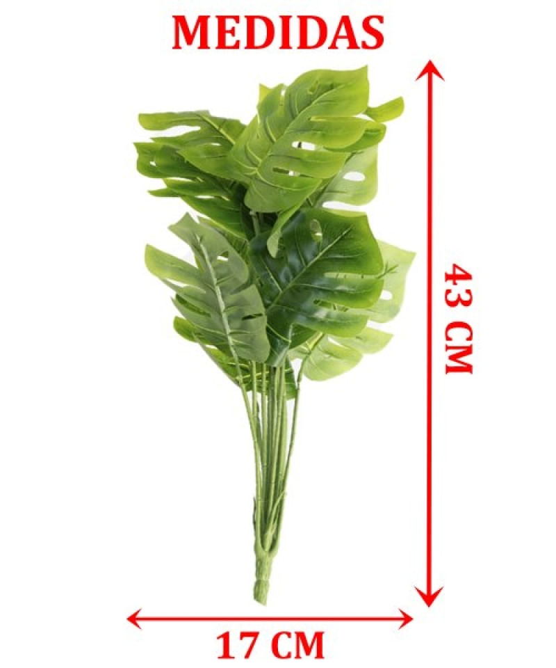 Kit 4 Ramo Planta Artificial Costela De Adão Decoração 43cm - Transforme a sua casa ou escritório com a nossa elegante planta artificial Costela de Adão! Projetado detalhadamente para replicar a aparência natural da Costela De Adão, desfrute de sua beleza sem necessidade de regar, podar ou fertilizar, Fabricado com materiais de alta qualidade que garantem durabilidade e resistência ao longo do tempo, Elegante, durável e sem a necessidade de cuidados constantes, nosso Ramo Costela de Adão Decorativo é a essência da decoração moderna e prática. Um acréscimo atemporal que promete elevar a atmosfera de qualquer ambiente! ESPECIFICAÇÕES: COR: Verde; MATERIAL: Plástico; MEDIDAS: Altura 43cm X Largura 17cm; Com 12 Galhos; CONTEÚDO DA EMBALAGEM: 4 Ramos Costela De Adão Planta Artificial De 43cm; Características Gerais do Produto: • Material: Plástico • Modelo: Costela de Adão • Cor: Verde • Dimensões aproximadas: Altura de 43cm X Largura 17cm Garantia: • Garantia do site - 1 Mês