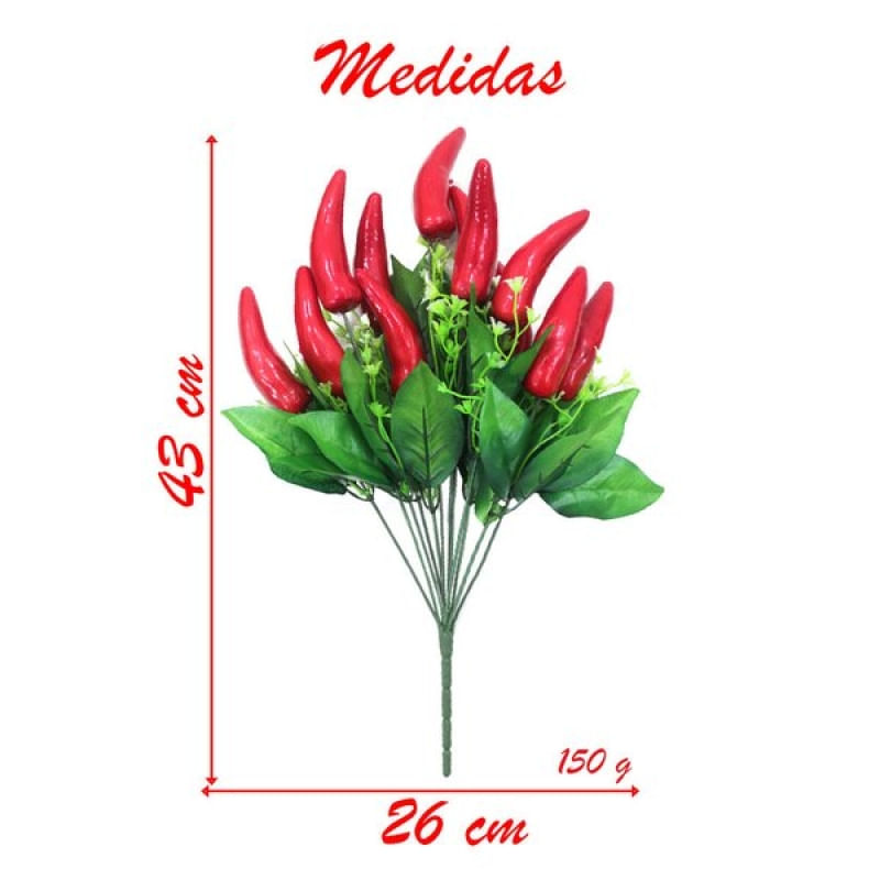 Kit 4 Ramos Decoração Arranjo Pimenta Artificial Plástico 12 Galhos Cada 45cm - Ideal para seu ambiente, os arranjos artificiais são modernos, versáteis e exóticos, caem bem em qualquer estilo e lugar, deixando o seu ambiente ainda mais bonito e elegante, devido a seu aspecto natural e realista. As folhas são reutilizáveis e fáceis de limpar, basta limpar a superfície suavemente com um pano úmido. Mantenha fora do alcance de crianças menores de 3 anos de idade. DETALHES: Possui 36 Folhas por ramo Altura: 45cm Cor: Verde. Material: Plástico. Características Gerais do Produto: • Material: Plástico • Cor: Verde Garantia: • Garantia de fábrica - 1 Mês