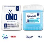 Kit 4kg de Sabão em pó OMO Perfect White + Amaciante Comfort Profissional Lavanderia 7 LtsO Sabão em Pó OMO Lavagem Perfeita contém uma nova fórmula com Biotecnologia + Anti-Resíduos, garantindo máxima limpeza e zero danos de resíduos de sabão. Sua fórmula, com pó ultrafino de rápida dissolução na lavagem de roupa, remove as manchas de primeira, sem desgastar os tecidos e ainda cuida das cores pretas. Ele oferece muito poder e cuidado para as suas roupas e ainda a deixa perfumada por muito mais tempo. O lava roupas Lavagem Perfeita OMO é indispensável em sua lavanderia, pois cuida das suas roupas, da sua máquina e do meio ambiente. É imbatível na limpeza* e cuida do meio ambiente, pois sua fórmula contém ingredientes biodegradáveis, e não possui fosfato, ajudando a preservar rios e oceanos, além de economizar água**. Além disso, possui ativo concentrado, tecnologia que cuida do planeta. Menos CO₂, menos poluição. É um lava-roupas sustentável e com rendimento eficiente, pois necessita de apenas um enxágue e permite lavar uma máquina cheia com apenas meia xícara***. Perfeito para manter suas roupas impecáveis e seu dia a dia super prático! Sua embalagem é 100% reciclável. Faça o descarte consciente. Quando você escolhe OMO, você escolhe um mundo melhor. Porque OMO acredita que se sujar, faz bem. Mantenha o produto fora do alcance de crianças e dos animais domésticos. Leia o rótulo antes de usar o produto. Para saber mais sobre a linha de produtos OMO, acesse o site. *Comparado a detergentes do mesmo fabricante. Remove manchas como suco de laranja, sobremesa de chocolate e óleo de fritura (tecido de algodão). **Reduzindo de 2 ou mais enxágues para apenas 1.***Xícara de chá de 240 ml. Máquina de abertura superior Comfort Pro Amaciante lavanderia Comfort Pro Original 7LSUAS ROUPAS COM PERFUME DE LAVANDERIA:Descubra o segredo para roupas irresistivelmente macias, com cores vibrantes e perfumadas com o Amaciante Lavanderia Profissional Original de Comfort! Transforme suas lavagens em momentos de puro prazer com a fragrância poderosa que dura por até 30 dias, envolvendo suas roupas em uma sensação de frescor que desafia o tempo.Sua fórmula avançada não apenas oferece maciez intensiva, mas também proporciona um cuidado superior, penetrando nas fibras das roupas para uma combinação perfeita de suavidade e perfume. Além disso, ele é a escolha inteligente para quem busca qualidade e sustentabilidade com uma embalagem econômica de 7 litros, oferecendo um tratamento premium a cada ciclo de lavagem. Sem falar que protege suas roupas dos sinais de envelhecimento dos tecidos. Experimente o toque suave de comfort!FORMULA EXCLUSIVA COMFORT PROFISSIONAL:A fórmula do Amaciante Comfort Pro Lavanderia Profissional foi desenvolvida para assegurar maciez e aroma às roupas e tecidos, com alto nível de ingredientes suavizantes que penetram nas fibras das roupas. Com a qualidade de Comfort, o formato Profissional trata as roupas a cada ciclo de lavagem, proporcionando maciez prolongada e aroma duradouro. Inclui tecnologia que ajuda a proteger as peças contra os sinais de envelhecimento dos tecidos: previne a formação de bolinhas, mantém a elasticidade, previne danos, evita esgarçamento, protege as cores e mantém o brilho das roupas. A embalagem de 7 litros rende até 700 quilos de roupas macias e tratadas. É um produto mais sustentável, com embalagem reciclável e ingrediente ativo biodegradável.GARANTIA 3 MESESIMAGENS ILUSRATIVAS