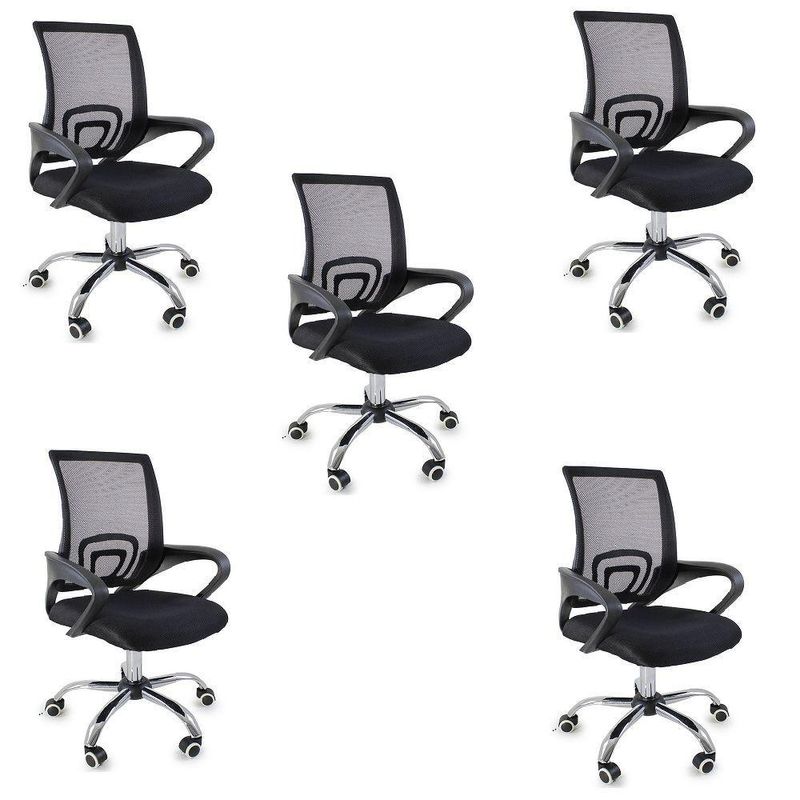 Kit 5 Cadeiras De Escritório Oficial Begonia Mesh GiratóriaCadeira de Escritório Begonia Tela MeshSinta a diferença de trabalhar com conforto e estilo.A Cadeira Begonia foi desenvolvida para acompanhar o seu ritmo diário, seja no escritório ou no home office. Seu encosto fixo com suporte lombar e revestimento em Tela Mesh respirável garantem ergonomia, ventilação e postura correta durante longas horas de uso.Com ajuste de altura, base giratória e design leve, ela combina praticidade, modernidade e bem-estar em um só produto.Fácil de montar, acompanha manual de instruções e, se precisar, nossa equipe está sempre pronta para ajudar.Dimensões:Altura:Total: 90–100 cmDo braço ao chão: 63–75 cm Do assento ao chão: 46–58 cm Encosto: 48 cm Braço: 28 cm Largura:1 perna: 25 cm 2 pernas: 50 cm Assento: 45 cm Encosto: 40,5 cm Braço: 4,5 cm Entre braços: 54 cm Comprimento:Encosto: 2 cm Assento: 47,5 cm Braço: 30 cm Peso: 5,5 kgEspecificações Técnicas:Estrutura: Nylon e aço cromado Revestimento: Nylon e tela Mesh Braços: Polipropileno Assento: Madeira multilaminada Peso máximo suportado: 120 kgAcompanha E-book!