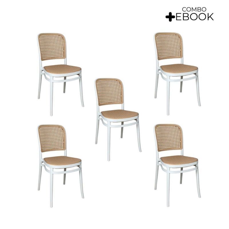 Kit 5 Cadeiras De Jantar Roma Para Sala E Cozinha Branco Cadeira de Jantar Roma para Sala e Cozinha BrancoDesign e EstiloCom visual moderno e elegante, a Cadeira Roma traz um toque sofisticado à decoração. Seu encosto e assento apresentam leve inclinação ergonômica, garantindo conforto duradouro durante as refeições ou nas conversas à mesa.Material e DurabilidadeProduzida 100% em polipropileno de alta qualidade, a cadeira oferece excelente resistência e durabilidade. Com peso aproximado de 5?kg, suporta até 120?kg e contribui para um ambiente agradável e funcional.Conforto e PraticidadeO assento e encosto foram ergonomicamente projetados para oferecer suporte e conforto prolongado. A limpeza é simples e rápida: basta um pano úmido para manter a peça com aspecto impecável.Dimensões e Especificações Técnicas:Altura total: 85?cmLargura total: assento varia entre 34?cm a 41,5?cmProfundidade total: 42?cmComprimento: 42 cmGarantiaContempla 3 meses de garantia contra defeitos de fabricação, reforçando a segurança da sua compra. Destaques Característica: Benefício:Polipropileno Premium - Leveza, resistência e fácil manutençãoSuporta até 120?kg - Uso seguro e estabilidade para várias pessoasProjeto ergonômico - Conforto prolongado, ideal para refeições e lazerMedidas compactas - Facilmente encaixável em diferentes ambientesGarantia de fábrica - Assistência rápida e confiávelIdeal para: Salas de jantar, cozinhas gourmet, varandas, áreas de lazer ou ambientes de estar. Perfeita para quem busca design contemporâneo aliado à funcionalidadeAcompanha E-book!