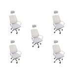 Kit 5 Cadeiras Escritório Diretor Mesh Encosto Branco + E-bookCadeira Escritório Diretor Tela Mesh Com Encosto De CabeçaA escolha de uma cadeira adequada desempenha um papel crucial na prevenção de possíveis lesões. Com a cadeira Diretor, você garante o conforto e bem-estar essenciais para suas atividades diárias. Além disso, sua versatilidade permite que ela se encaixe perfeitamente em diversos ambientes, seja em casa, no escritório ou home office, proporcionando um toque moderno e harmonioso. Personalização para seu confortoAproveite ao máximo o ajuste de altura desta cadeira. Isso lhe permitirá adaptar a posição do seu tronco em relação à mesa, proporcionando um nível de conforto específico para suas necessidades individuais. Promovendo o bem-estarOs apoios de braço foram cuidadosamente projetados para melhorar sua postura enquanto escreve, facilitando a incorporação natural quando necessário. Além disso, o modelo Diretor apresenta um suporte para a nuca, que é de extrema importância para manter a postura correta ao executar suas tarefas diárias, especialmente aquelas que requerem longos períodos sentado. Mobilidade sem esforçoAs rodas integradas garantem facilidade de movimento em seu espaço. Você não só poderá movê-la com tranquilidade, mas também desfrutará da conveniência das rotações de 360º, eliminando a necessidade de reajustar sua posição ou deslocar-se fisicamente. Escolha a cadeira Diretor para elevar seu conforto e eficiência, enquanto cuida do seu corpo e do seu ambiente de trabalho, estudo ou lazer.Peso: 5,5 kgEstrutura: Nylon e aço cromadoRevestimento: Nylon, Tela MeshBraço: PolipropilenoAssento: Madeira multilaminadaPeso máximo recomendado: 120 KgAcompanha E-book