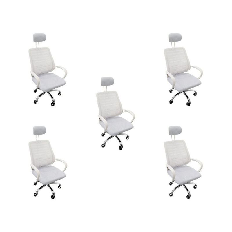 Kit 5 Cadeiras Escritório Diretor Mesh Encosto Branco + E-book