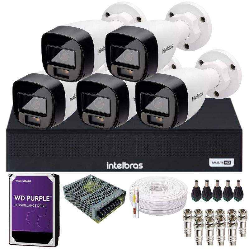 Conteúdo 01 Dvr 08 Canais Intelbras 1108-c 05 Câmera De Segurança Intelbras Vhd 1220 B Full Color01 Hd 1Tb Purple Instalado 01 Fonte Eletrônica Chaveada 12v 5a Bivolt 50 Metros De Cabo Coaxial Flexível 4mm 80% De Malha 10 Conectores Bnc Antirruído Parafuso E Mola 05 Conectores P4 Macho Com Borne 01 Mouse Usb Dvr Intelbras Mhdx 1108-c O Dvr Intelbras 1108-c É Uma Solução Completa E Acessível Para Sistemas De Monitoramento Com Até 8 Câmeras. Compatível Com Diversas Tecnologias De Vídeo, Ele Oferece Segurança, Qualidade E Acesso Remoto Com Facilidade, Ideal Para Residências, Comércios E Pequenas Empresa Modelo: Mhdx 1108-c Canais De Vídeo: 8 Canais Bnc (Hdcvi / Ahd / Hdtvi / Analógico) + 1 Canal Ip Adicional Resolução De Gravação: Até 1080p Lite (Full Hd) Compressão: H.265+ (Otimiza O Uso De Armazenamento) Saídas De Vídeo: 1 Hdmi E 1 Vga (Visualização Simultânea) Armazenamento: 1 Entrada Sata (Compatível Com Hd/ssd Até 6tb) Áudio: 1 Entrada E 1 Saída Rca Acesso Remoto: Aplicativo Intelbras Isic, Intelbras Cloud E Navegador Web Funções Extras: Detecção De Movimento, Gravação Programada, Busca Inteligente, Backup Via Usb Fonte De Alimentação: Bivolt Automático (100~24 Câmera Intelbras Vhd 1220 B Full Color A Vhd 1220 B Full Color Da Intelbras É Uma Câmera De Segurança Com Resolução Full Hd Que Oferece Imagens Coloridas 24 Horas Por Dia, Mesmo Em Ambientes Com Baixa Iluminação. Com Tecnologia Hdcvi E Iluminação Led Branca, É Ideal Para Quem Busca Vigilância Com Alta Nitidez E Identificação Facilitada, Dia E Noite. Descrição Técnica Modelo: Vhd 1220 B G6 Full Color Tecnologia: Hdcvi (Analógica Hd) Resolução: Full Hd 1080p (1920 X 1080) Sensor De Imagem: 1/2.8" Cmos Full Color Lente: 2.6 Mm (Amplo Ângulo De Visão) Iluminação Mínima: 0.01 Lux (Imagem Colorida Com Pouca Luz) Iluminação Auxiliar: Led Branco – Até 20 Metros (Imagem Colorida No Escuro Total) Proteção: Ip66 (Uso Externo – Resistente À Água E Poeira) Alimentação: 12v Dc (±10%) Instalação: Suporte 3 Eixos – Fácil Ajuste Em Parede Ou Teto