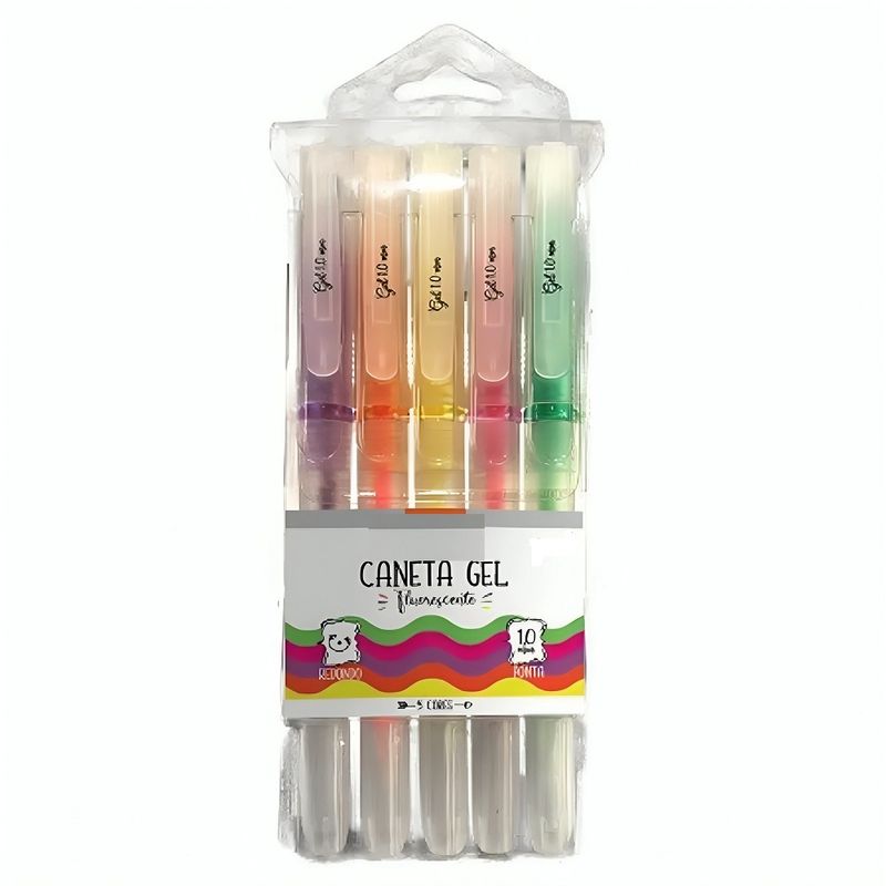 Explore sua criatividade com o Kit 5 Canetas Gel Neon 1.0mm, uma explosão de cores fluorescentes para realçar sua expressão artística. Certificado pelo Inmetro, esse conjunto oferece tons vibrantes - Rosa, Amarelo, Laranja, Verde e Roxo. As dimensões compactas do blister (6 x 1,5 x 15cm) e do produto (1,2 x 14,7cm) garantem praticidade.A tinta, à base de corantes orgânicos e solventes, é aplicada através de uma ponta de aço inoxidável e esfera de tungstênio com 5 x 1,6mm, proporcionando uma escrita suave e precisa de 1.0mm. A Caneta Esferográfica Gel Glitter é leve, com formato redondo, tornando-a fácil de manusear.Sua tampa ventilada, além de prática para prender em cadernos ou pastas, preserva a durabilidade da caneta. As cores intensas e pigmentadas aprimoram anotações, desenhos e decorações em papéis claros ou escuros, sem borrar ou perder o brilho.Especificações:Material: Plástico e Componentes MetálicosTamanho: 1,2 x 14,7cm (Cada Caneta)Cor: Rosa, Amarelo, Laranja, Verde, RoxoDimensões do Blister: 6 x 1,5 x 15cmInstruções de Uso e Cuidados:Armazene em local fresco e seco.Evite exposição prolongada à luz solar direta.Mantenha longe de crianças menores de 3 anos.