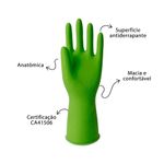 Kit 5 Pares De Luvas Nobre Látex P P/ Agentes Químicos Resistente E Segura VerdePar de Luvas Nobre em Látex Verde é ideal para a proteção das mãos em atividades que envolvem o manuseio de agentes químicos. Com alta resistência e impermeabilidade, elas foram testadas em laboratório para garantir desempenho seguro em ambientes industriais, laboratoriais ou de limpeza pesada. Sua cor verde facilita a identificação rápida do uso específico para substâncias químicas.- Proteção eficaz contra agentes químicosIndicada para manuseio de substâncias conforme especificações técnicas e testes laboratoriais.- Material resistente e impermeávelBorracha de alta durabilidade que impede a penetração de líquidos.- Ideal para uso profissionalExcelente escolha para indústrias, laboratórios, limpeza técnica e processos que exigem proteção química.Especificações do produto:Tamanho: P (Pequeno)Material: Borracha natural (látex)Cor: VerdeIndicação de uso: Proteção contra agentes químicos – consultar manual para tipos de substâncias indicadasImpermeável: SimReutilizável: Sim, com os devidos cuidadosConservação:- Armazenar ao abrigo do sol, calor e umidade- Manter fora do alcance de derivados de petróleo- Lavar, enxaguar e secar após o usoValidade: 3 anos (desde que a embalagem esteja intacta e as condições de armazenamento sejam respeitadas)Conteúdo da embalagem: 5 pares (10 luvas)Par de Luvas Nobre em Látex Verde é ideal para a proteção das mãos em atividades que envolvem o manuseio de agentes químicos. Com alta resistência e impermeabilidade, elas foram testadas em laboratório para garantir desempenho seguro em ambientes industriais, laboratoriais ou de limpeza pesada. Sua cor verde facilita a identificação rápida do uso específico para substâncias químicas.- Proteção eficaz contra agentes químicosIndicada para manuseio de substâncias conforme especificações técnicas e testes laboratoriais.- Material resistente e impermeávelBorracha de alta durabilidade que impede a penetração de líquidos.- Ideal para uso profissionalExcelente escolha para indústrias, laboratórios, limpeza técnica e processos que exigem proteção química.Especificações do produto:Tamanho: P (Pequeno)Material: Borracha natural (látex)Cor: VerdeIndicação de uso: Proteção contra agentes químicos – consultar manual para tipos de substâncias indicadasImpermeável: SimReutilizável: Sim, com os devidos cuidadosConservação:- Armazenar ao abrigo do sol, calor e umidade- Manter fora do alcance de derivados de petróleo- Lavar, enxaguar e secar após o usoValidade: 3 anos (desde que a embalagem esteja intacta e as condições de armazenamento sejam respeitadas)Conteúdo da embalagem: 5 pares (10 luvas)