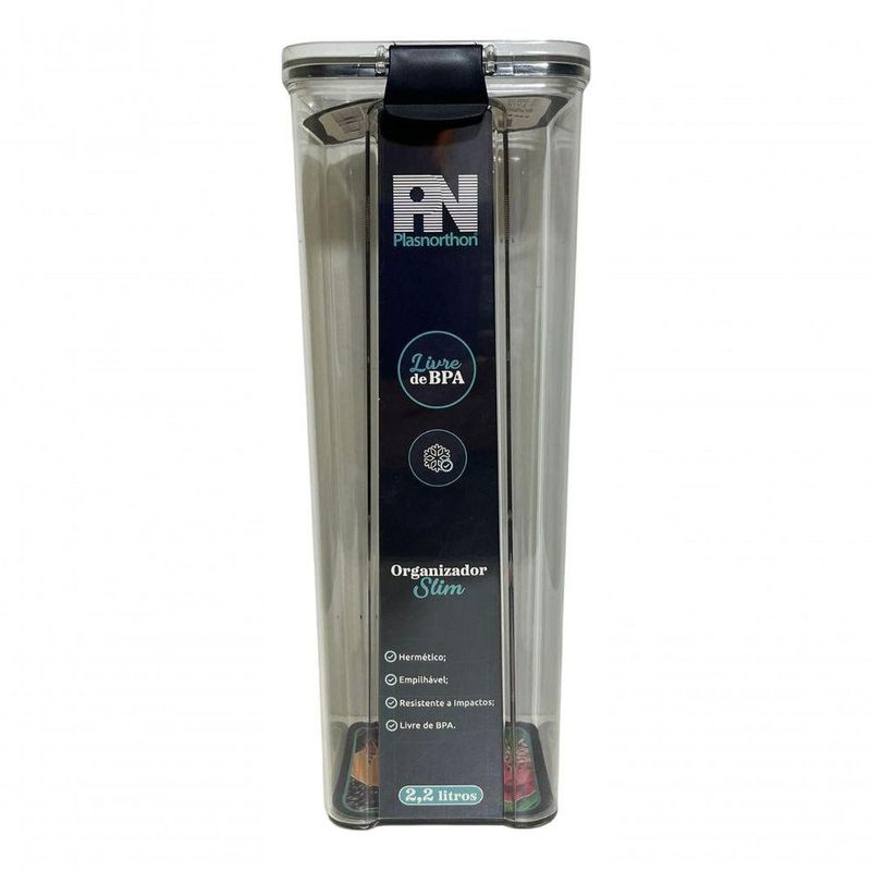 Kit 5 Potes Herméticos Com Tampa Vedação Quadrado PlasnortonKit de 5 Potes Herméticos: Armazenamento Seguro e Frescor DuradouroO Pote Hermético é a solução ideal para manter seus alimentos frescos e protegidos por mais tempo. Com vedação hermética de alta qualidade, este pote proporciona um armazenamento seguro e eficiente para uma variedade de alimentos.Fabricado com materiais duráveis e livres de BPA, assegura a qualidade e a segurança alimentar. A tampa hermética cria um selo que impede a entrada de ar e a saída de umidade, mantendo os alimentos frescos por mais tempo e preservando seu sabor e textura.Adequado para armazenar grãos, cereais, biscoitos, café, chá, nozes e outros alimentos secos, bem como alimentos úmidos, como sopas, ensopados e sobras. A vedação segura mantém o aroma e evita vazamentos, sendo uma escolha confiável para transportar refeições.Com transparência cristalina, permite identificar facilmente o conteúdo sem necessidade de abrir o pote. O design empilhável é conveniente para organizar despensas ou refrigeradores.A limpeza pode ser feita à mão ou na máquina de lavar louças.Na embalagem, contém:Referencia 500....1 Pote Hermético de 500 ML - 7 x 10,5 x 11,5 cmReferencia 1805...1 Pote Hermético de 800 ML - 10 x 10,5 x 11,5 cmReferencia 1810....1 Pote Hermético de 1L - 13 x 10,5 x 11,5 cmReferencia 1815.....1 Pote Hermético de 1,6L - 19 x 10,5 x 11,5 cmReferencia 1820.....1 Pote Hermético de 2,2 L - 28,5 x 10,5 x 11,5 cm
