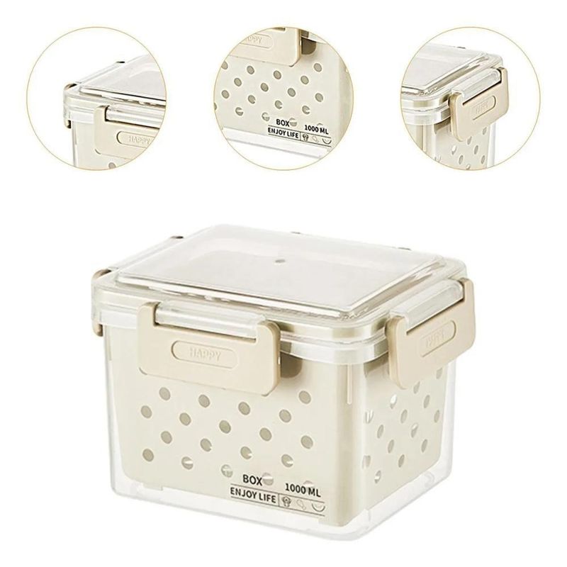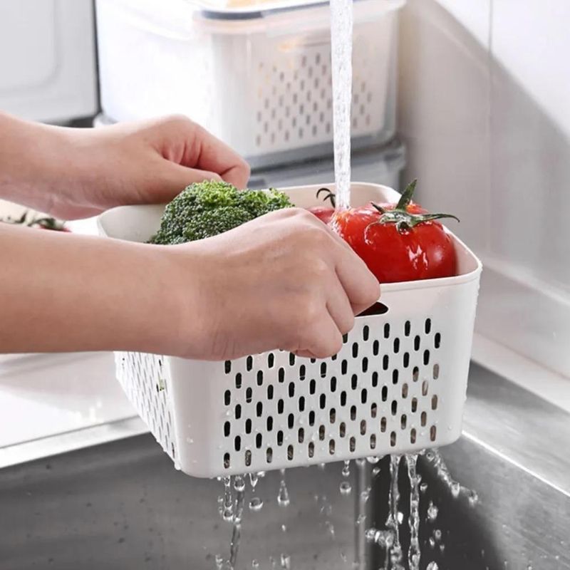 Kit 5 Potes Hermeticos Organizador Geladeira Escorredor Interno Marmita Fitness Plastico Tampa Trava Legumes Frutas VerdOrganização, Higiene e Praticidade na CozinhaO Kit de Potes Herméticos com Cesto foi desenvolvido para oferecer o máximo de eficiência no armazenamento dos alimentos.Cada pote possui tampa de vedação de alta performance, que impede a entrada de ar e umidade, mantendo frutas, legumes, grãos e snacks frescos por muito mais tempo.Diferencial: cestos internos/escorredores que permitem drenar líquidos e garantir circulação de ar dentro do recipiente.Isso prolonga o frescor e evita o acúmulo de umidade.Com design transparente e empilhável, os potes facilitam a visualização do conteúdo sem precisar abrir, além de otimizar o espaço em geladeiras, armários e despensas.Produzidos em plástico resistente, livre de BPA, são seguros, duráveis e ideais para uso diário.Itens Inclusos:- 01 Pote Grande- 02 Potes Médios- 02 Potes PequenosEspecificações:- Pote Grande: 12 cm (A) x 17 cm (L) x 26 cm (C)- Pote Médio: 9,5 cm (A) x 10,5 cm (L) x 15 cm (C)- Pote Pequeno: 7,5 cm (A) x 8 cm (L) x 11 cm (C)- Material: Plástico livre de BPA- Peso Total: 905 g- Cores:sortidaBenefícios:- Conserva os alimentos por mais tempo- Evita odores e umidade- Design empilhável e moderno- Seguro, livre de BPA e fácil de higienizarImagens meramente ilustrativasOrganização, Higiene e Praticidade na CozinhaO Kit de Potes Herméticos com Cesto foi desenvolvido para oferecer o máximo de eficiência no armazenamento dos alimentos.Cada pote possui tampa de vedação de alta performance, que impede a entrada de ar e umidade, mantendo frutas, legumes, grãos e snacks frescos por muito mais tempo.Diferencial: cestos internos/escorredores que permitem drenar líquidos e garantir circulação de ar dentro do recipiente.Isso prolonga o frescor e evita o acúmulo de umidade.Com design transparente e empilhável, os potes facilitam a visualização do conteúdo sem precisar abrir, além de otimizar o espaço em geladeiras, armários e despensas.Produzidos em plástico resistente, livre de BPA, são seguros, duráveis e ideais para uso diário.Itens Inclusos:- 01 Pote Grande- 02 Potes Médios- 02 Potes PequenosEspecificações:- Pote Grande: 12 cm (A) x 17 cm (L) x 26 cm (C)- Pote Médio: 9,5 cm (A) x 10,5 cm (L) x 15 cm (C)- Pote Pequeno: 7,5 cm (A) x 8 cm (L) x 11 cm (C)- Material: Plástico livre de BPA- Peso Total: 905 g- Cores:sortidaBenefícios:- Conserva os alimentos por mais tempo- Evita odores e umidade- Design empilhável e moderno- Seguro, livre de BPA e fácil de higienizarImagens meramente ilustrativas