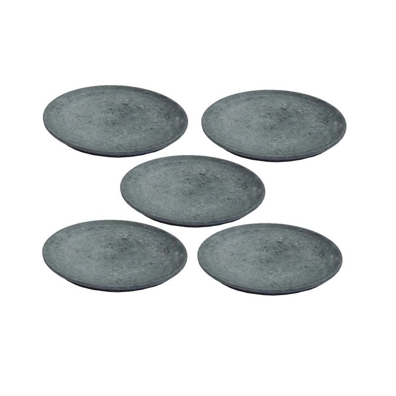 Kit 5 Pratos Raso Redondo Pedra Sabão Sobremesa e Bolos 26cm Sofisticado e saudável essas são as palavras que definem os pratos de pedra sabão. Podendo ser utilizado também para servir no café da manhã e lanches, sobremesas como bolos e tortas, saladas e pratos mais sofisticados. Eles possuem propriedades térmicas superiores, que permitem que ele mantenha a temperatura que recebe por muito mais tempo, seja para quente ou para frio. Além de bonitos, decorativos, são muito resistentes. Duráveis e decorativos os pratos de Pedra Sabão levam charme e requinte para sua cozinha e mesa. Algumas dicas importantes:Não colocar no micro-ondas. Basta lavá-la com esponja, água e sabão. Não use produtos abrasivos. Não indicado á máquinas lava-louças. Especificações técnicas:Peso: 1,900kg cada.Diâmetro: 26cm.Altura: 1,5cm. Itens inclusos:05 Pratos Raso Redondo Pedra Sabão Sobremesa e Bolos 26cm. Código: 28e5INDSJ.ProdutoLojaPlast.