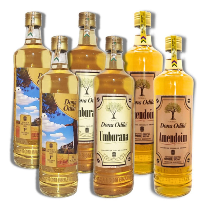 Este Kit especial apresenta 6 Cachaças Dona Odila de 690 ml na seguintes versões:2 unidades de Cachaça envelhecida em m barril de Carvalho Europeu, nossa primeira cachaça desenvolvida com todo carinho e suavidade, engarrafada com 38% volume alcoólico registro no mapa SP 04518-7.0000052 unidades de Cachaça Dona Odila Envelhecida em Barril de Amendoim 690ml, doce madeira brasileira, sabor marcante e suave. 40% volume alcoólico registro mapa SP-004518-7.0000182 unidades de Cachaça Dona Odila armazenada em tonel de umburana 690ml ______Amor pelasensação!Em meados de 1910 desembarcavam no Brasil imigrantes italianos, entre eles membros das Famílias Pinelli e Basso que se uniriam anos depois.O Sr. Anselmo Basso é o único integrante da Família Basso que se tem registros na história, da família Pinelli se tem notícias apenas do Sr. Gabriel e de um primo, também sem registro de nome.O Sr. Anselmo Basso viveu na região de Cravinhos onde formou uma família com 16 filhos entre eles Odila Basso que em 1952 casou-se com Orvilio Pinelli, filho de Gabriel Pinelli. Desse matrimônio tiveram 5 filhos, 7 netos e 7 bisnetos.Assim começa a história e a inspiração para o nome desta “joia” a cachaça Dona Odila.O nome Dona Odila surgiu da ideia de homenagear a matriarca da família Pinelli, que com muito amor e carinho cuidou de sua família.Símbolo de conforto, carinho e segurança, esse nome marcante e único, é traduzido para os produtos Dona Odila com suavidade sem perder a originalidade de seu sabor.Os produtos Dona Odila são produzidos com todo amor, primando sempre pela qualidade e originalidade com toques caseiros e segredos de família resultando em um sabor único que só a Dona Odila poderia guardar por tantos anos e me escolher seu neto Carlos Eduardo Pinelli para passar ideias e sabores milenares guardados até então a 7 chaves.