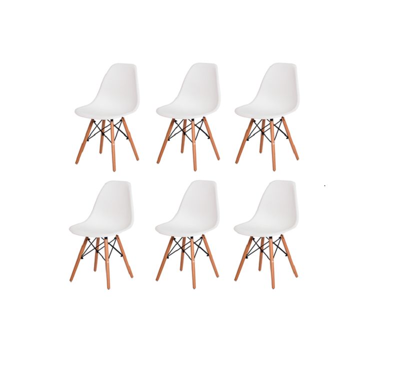 Kit 6 Cadeiras Charles Eames Eiffel Base Madeira Sala De Jantar Cozinha Branco Branco